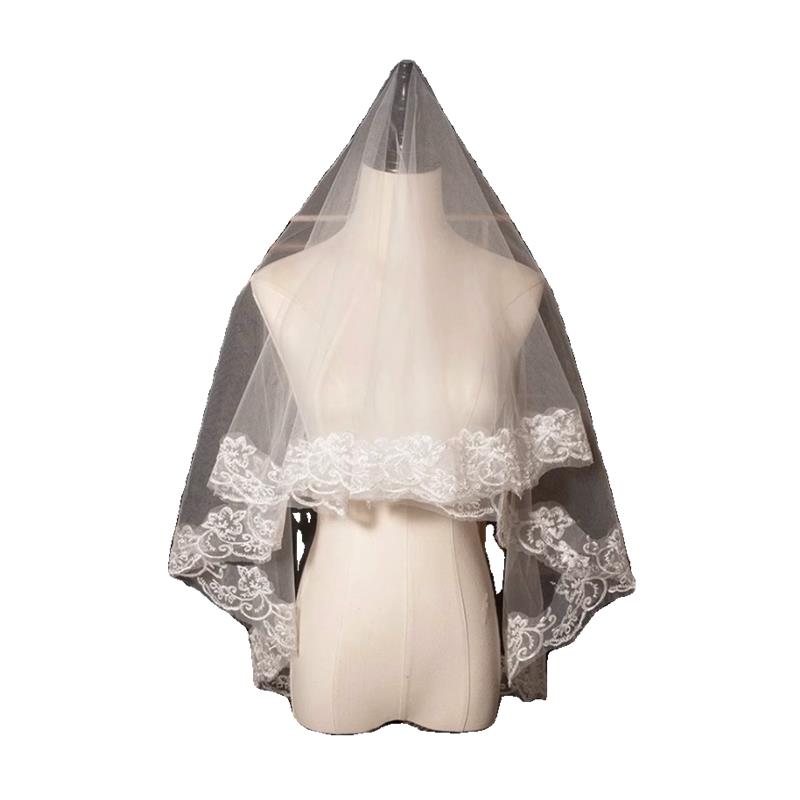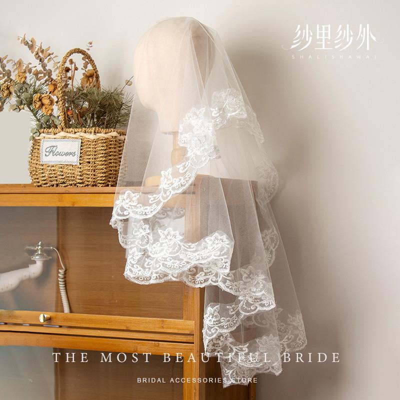 新品 复古蕾丝花边头纱新娘主婚纱拖尾结婚高级感盖头白色超仙 法式