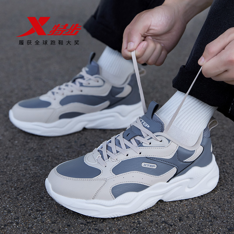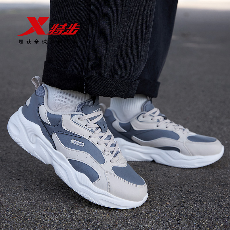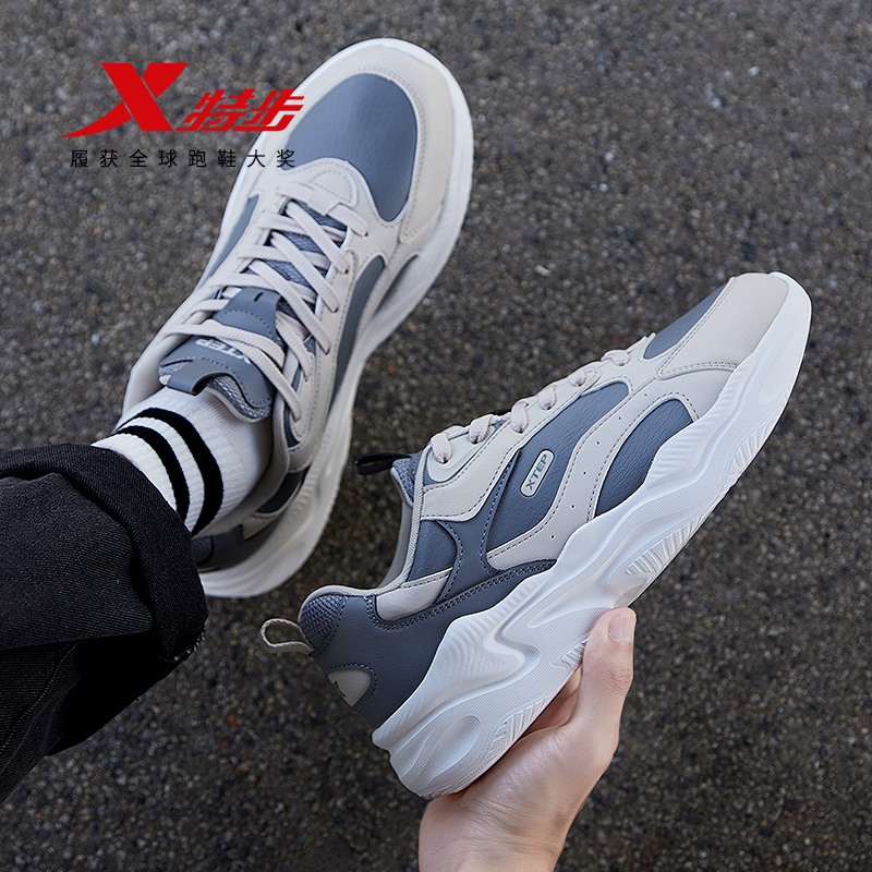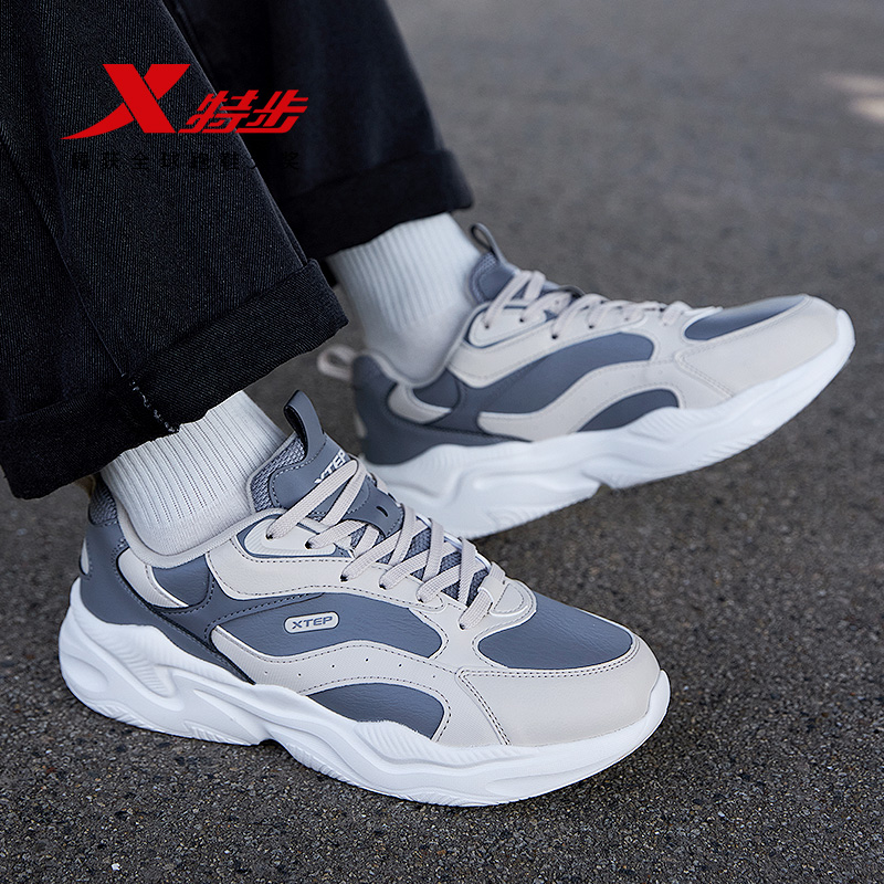 男鞋 子软弹平底鞋 厚底增高情侣休闲鞋 女鞋 革面 运动鞋 特步秋冬板鞋