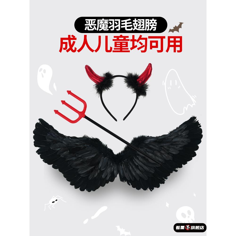 万圣节天使翅膀道具精灵背饰儿童cos服女童白色羽毛恶魔道具服饰