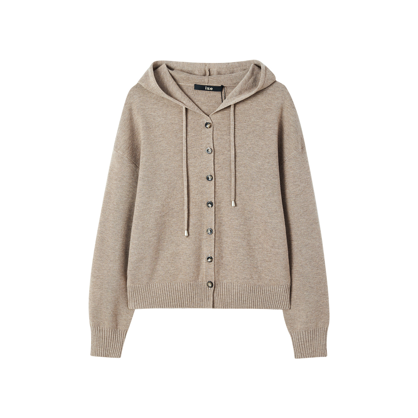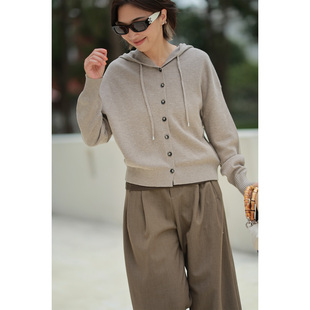 毛衣外套K2540807W 浅咖色带帽羊毛针织宽松开衫 ise 复古回潮