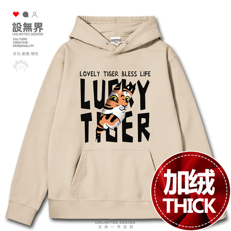 无界 0015设 小老虎发呆萌趣小众设计感连帽卫衣男女个性 潮流帽衫