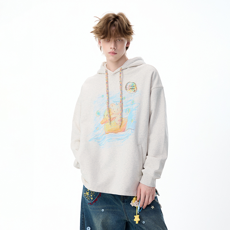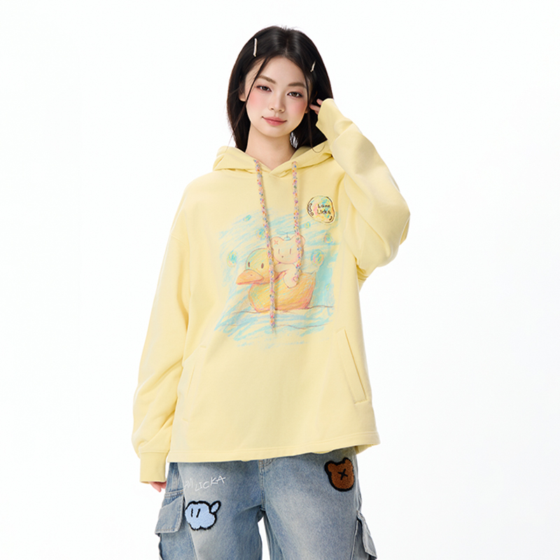 LAMLICKA可爱小黄鸭套头连帽卫衣男秋冬灰色加厚潮牌宽松长袖 上衣