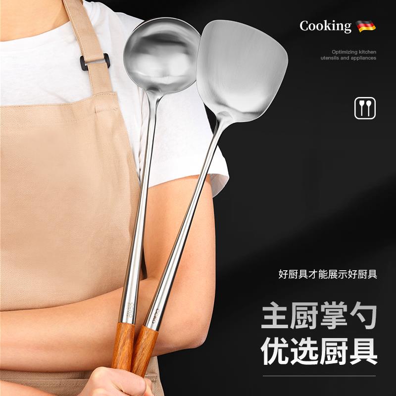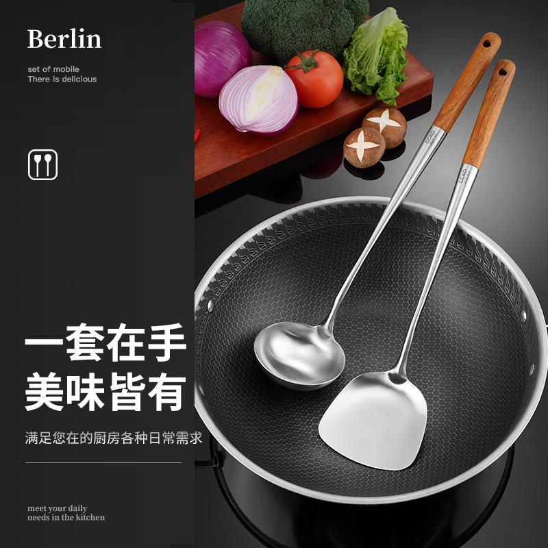 304不锈钢炒勺炒铲锅铲炒菜铲子长柄汤勺家用套装 厨师专用花梨木