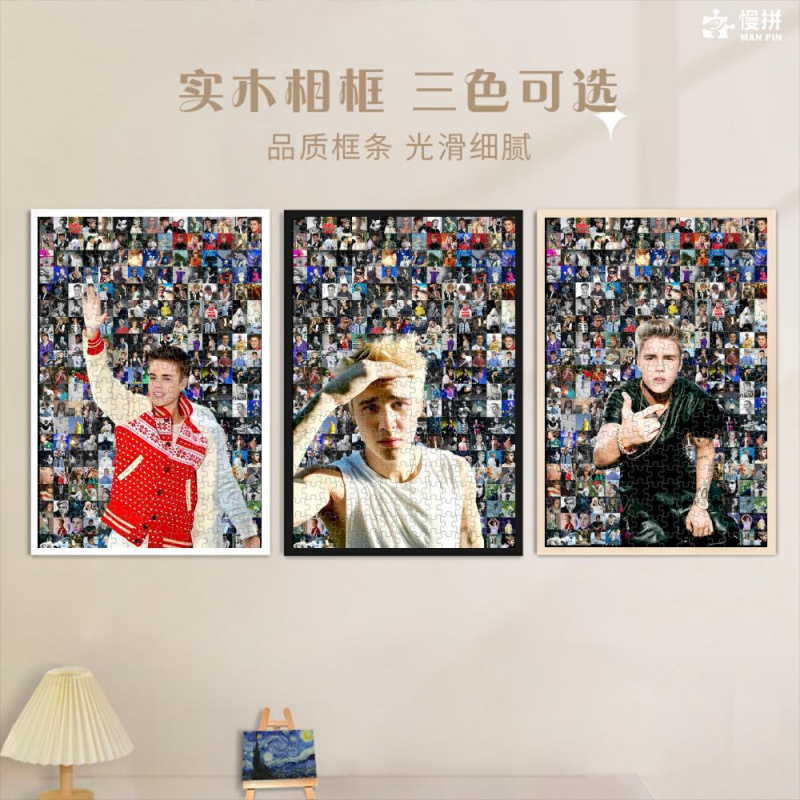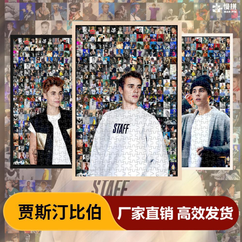 贾斯汀比伯明星周边饭制爱豆慢拼马赛克拼图木质成人玩具1000片批