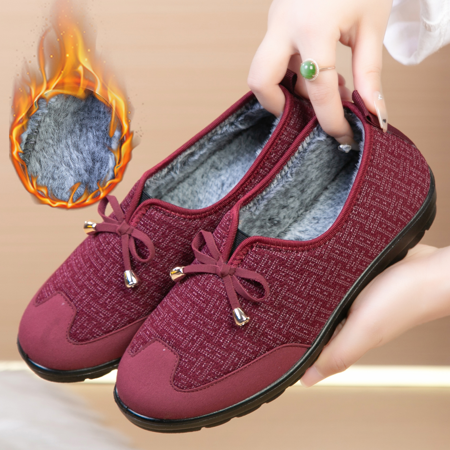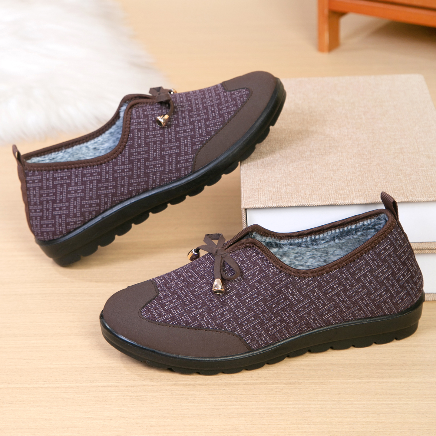加绒加厚保暖一脚蹬软底防滑妈妈鞋 新款 雪地靴 女2024冬季 棉鞋
