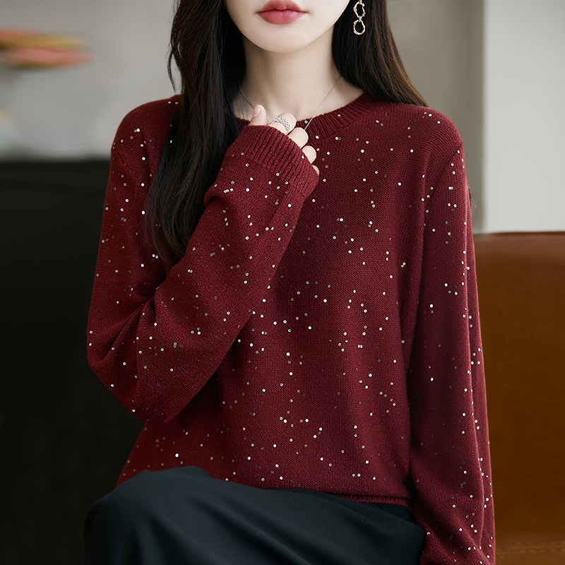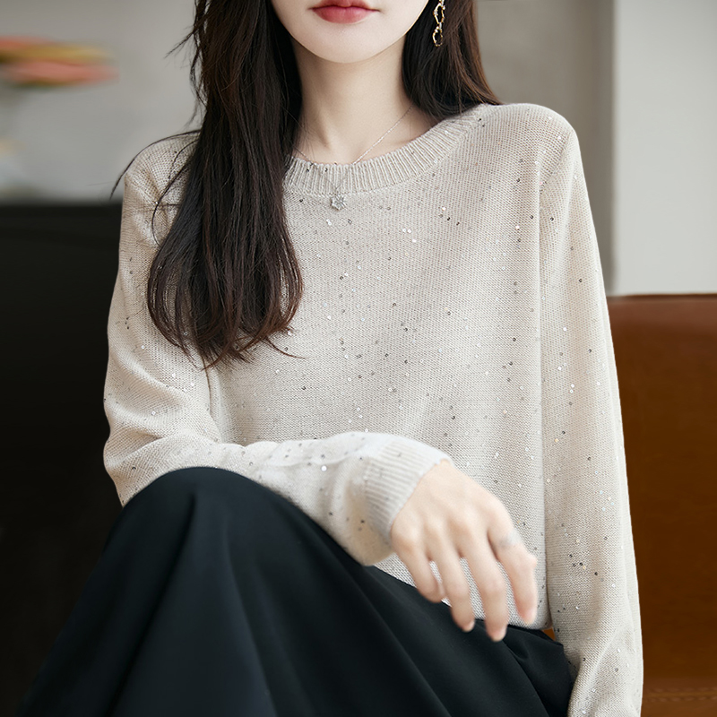 女装 秋冬时尚 春秋洋气上衣大码 女2025新款 秋冬毛衣 亮片针织打底衫
