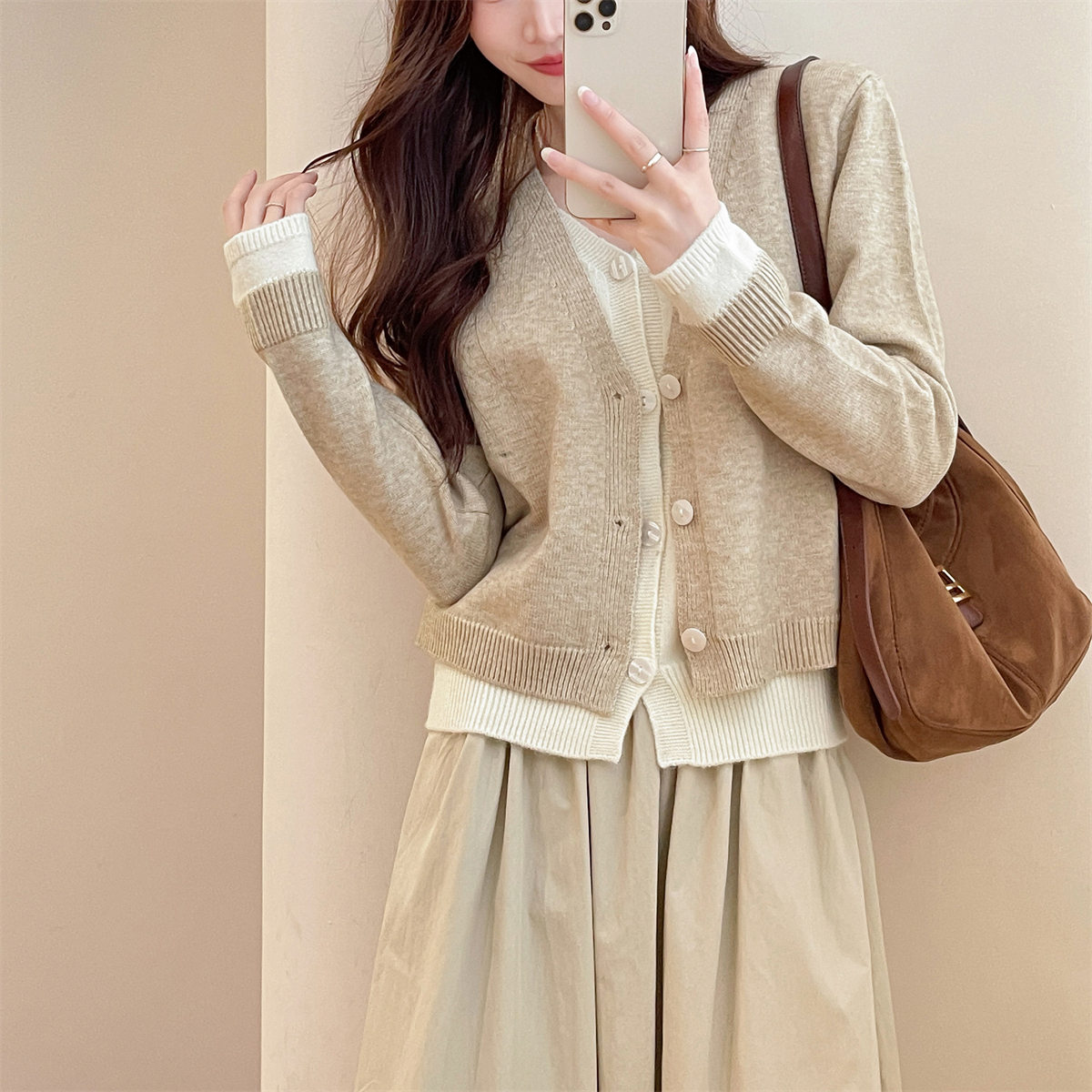上衣女装 韩系撞色翻领假两件毛针织衫 508196 秋季 三福毛衣2025新款