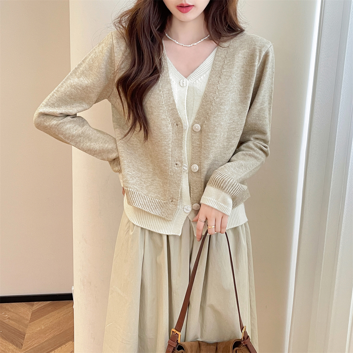 508208 上衣女装 三福假两件毛衣女2025新款 韩系早秋穿搭圆领针织衫