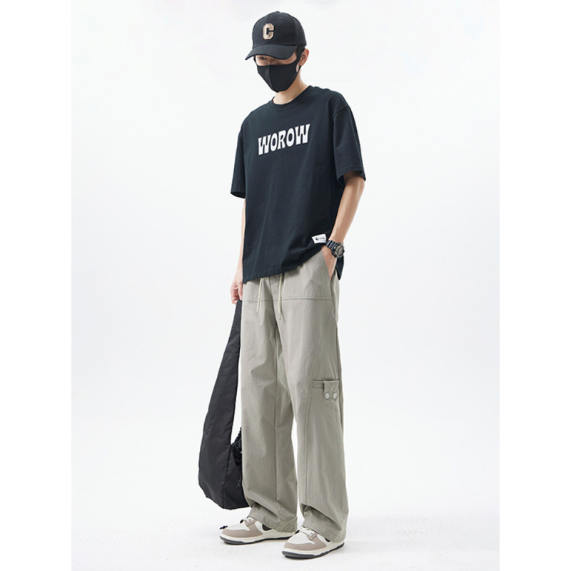 男生阔腿运动长裤 裤 秋季 垂感休闲潮牌港风宽松直筒工装 子男春秋款