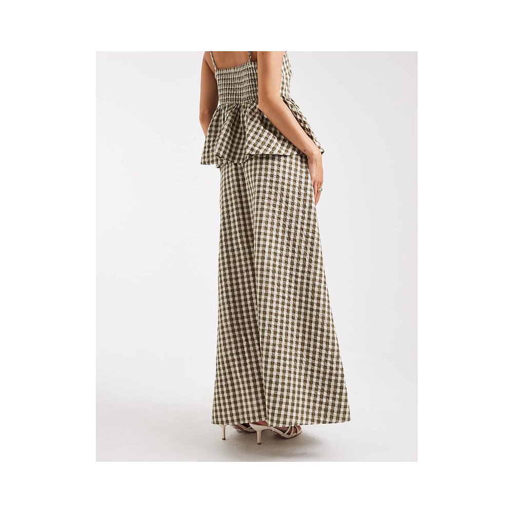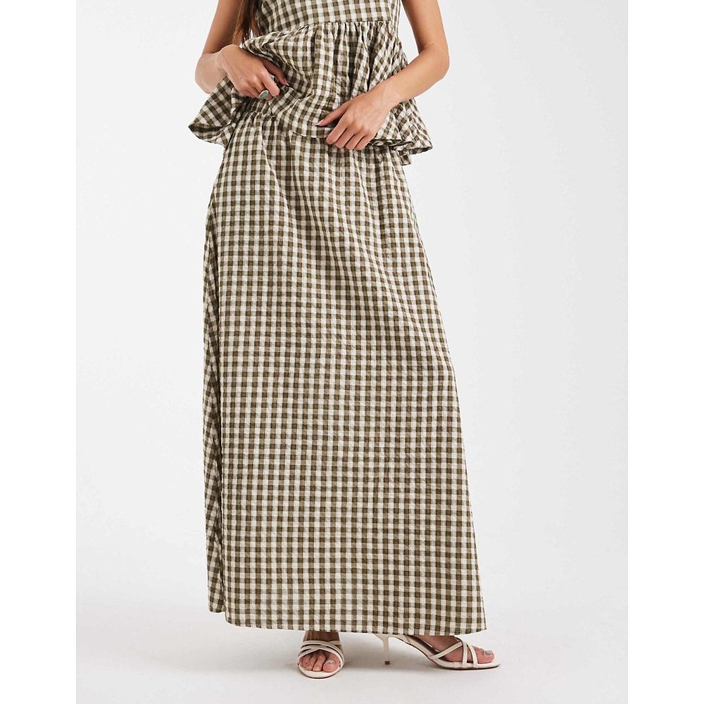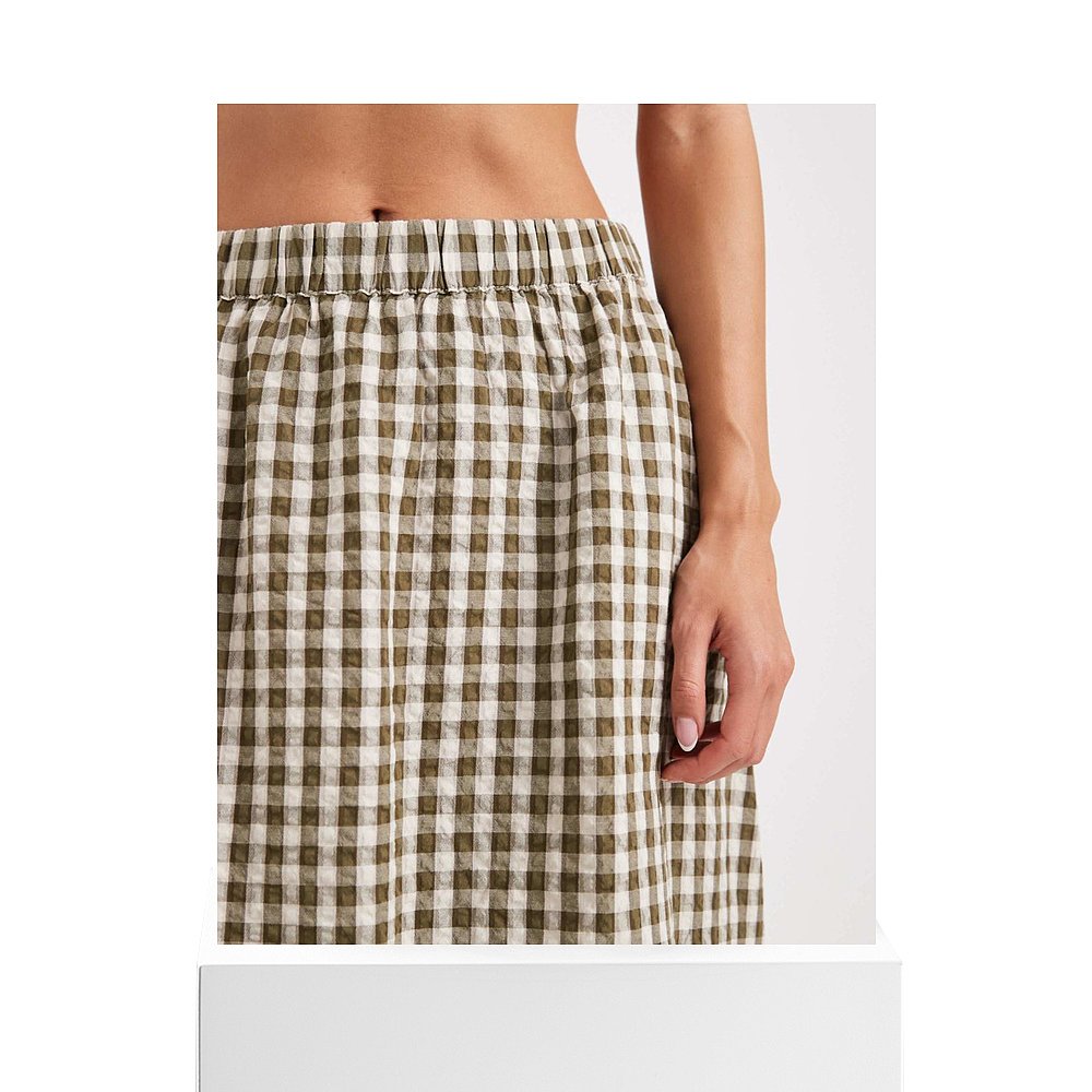 508211 格纹松紧腰a字裙子花边摆长裙女装 三福半身裙2025新款 秋季