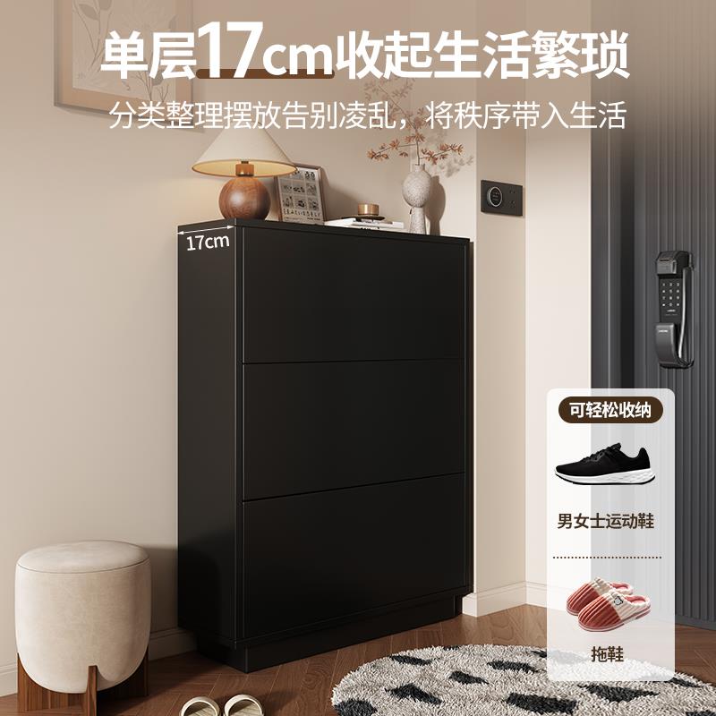 超薄鞋 柜 柜家用门口玄关柜黑色实木门外楼道大容量入户玄关翻斗鞋