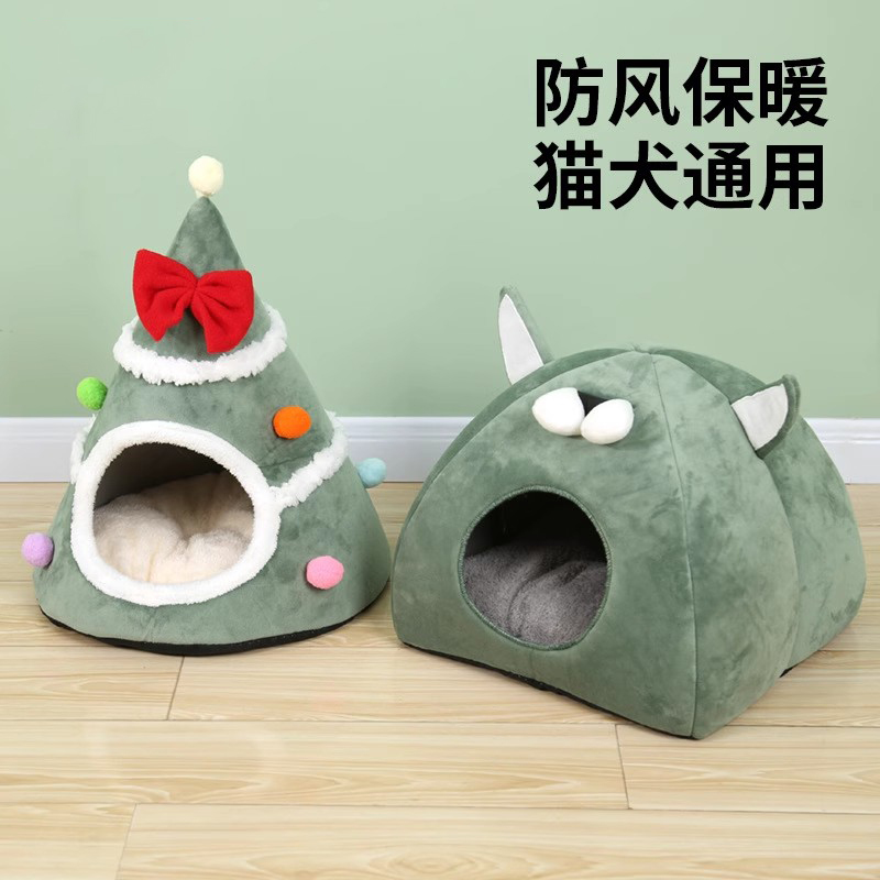 圣诞树猫窝冬季 保暖宠物窝泰迪狗窝蝴蝶结蒙古包猫床安全感窝垫子