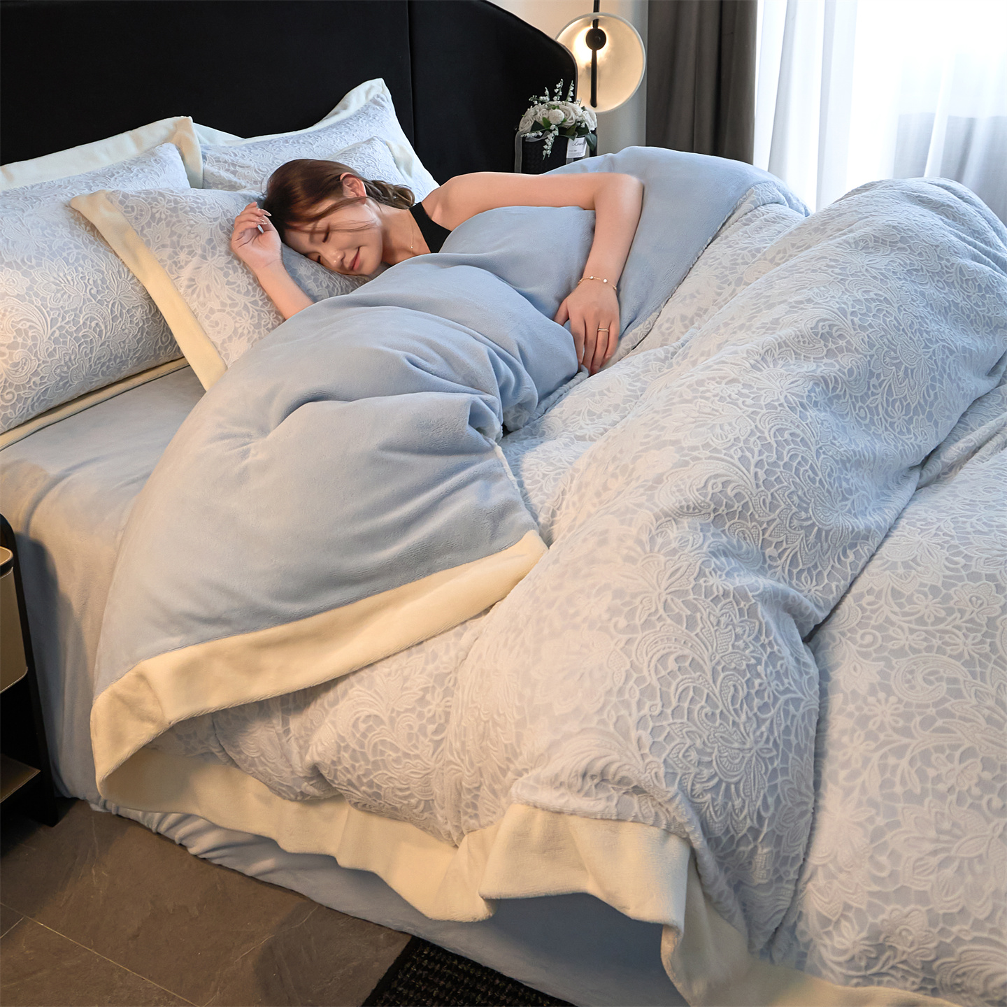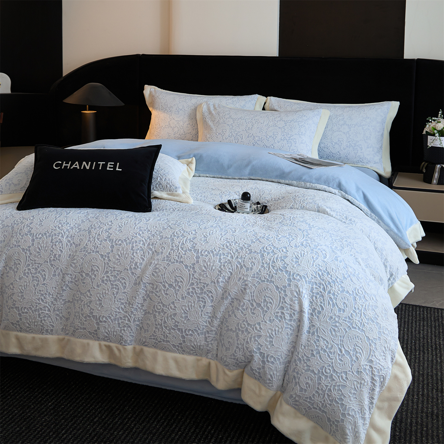 冬季 牛奶绒四件套轻奢高级感主卧室a类母婴级防静电简约风 花边款