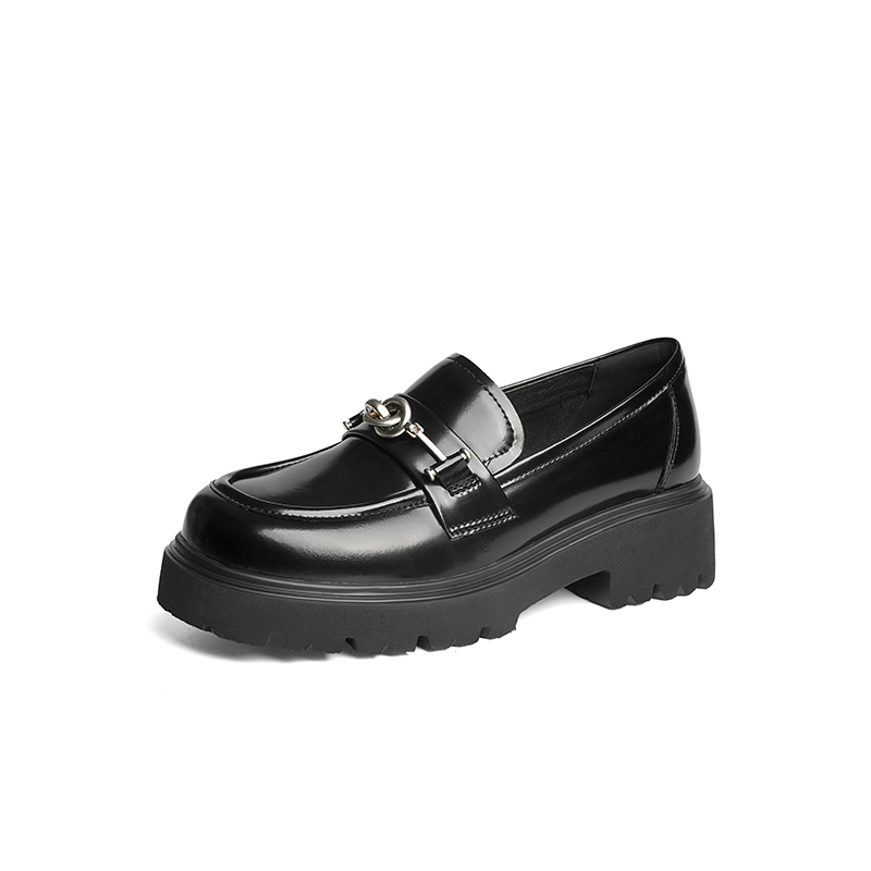 复古英伦风黑色小皮鞋 红蜻蜓厚底乐福鞋 一脚蹬单鞋 女鞋 女2025新款