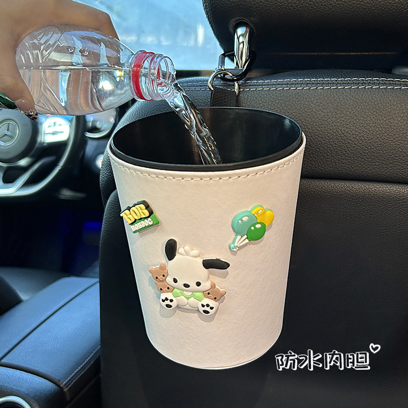 车载垃圾桶汽车内用高级感后排挂式 置物桶创意多功能雨伞收纳桶女