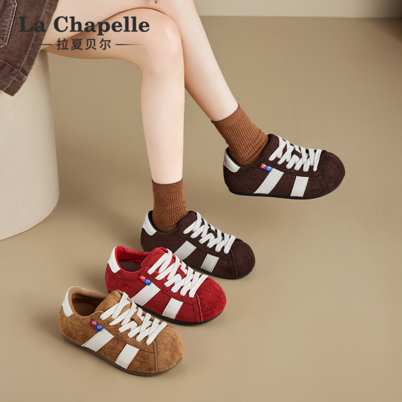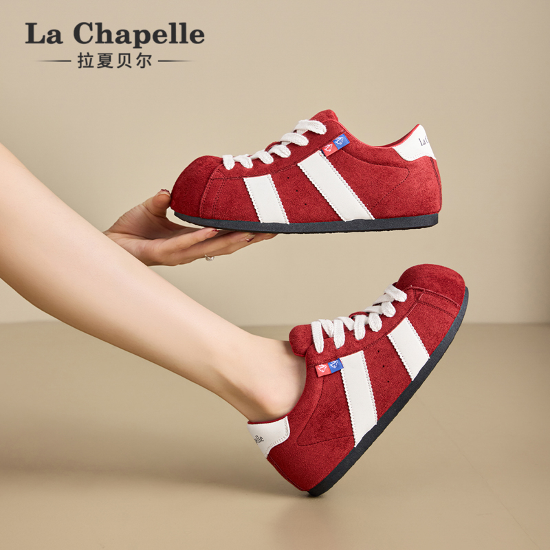 加绒休闲阿甘鞋 张凌赫 新款 百丽彩虹豆红色德训鞋 B1U1D预 董璇同款