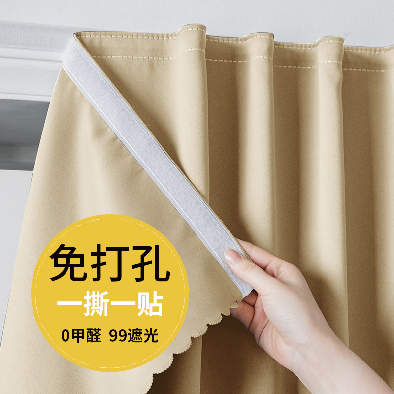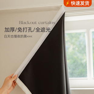 加厚全遮光布遮光窗帘成品卧室客厅免打孔防晒隔热阳台遮阳布神器