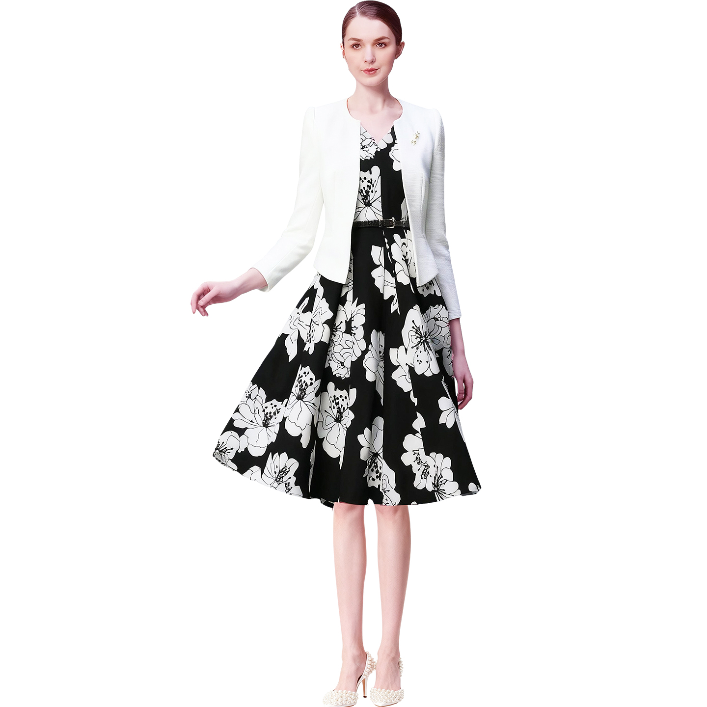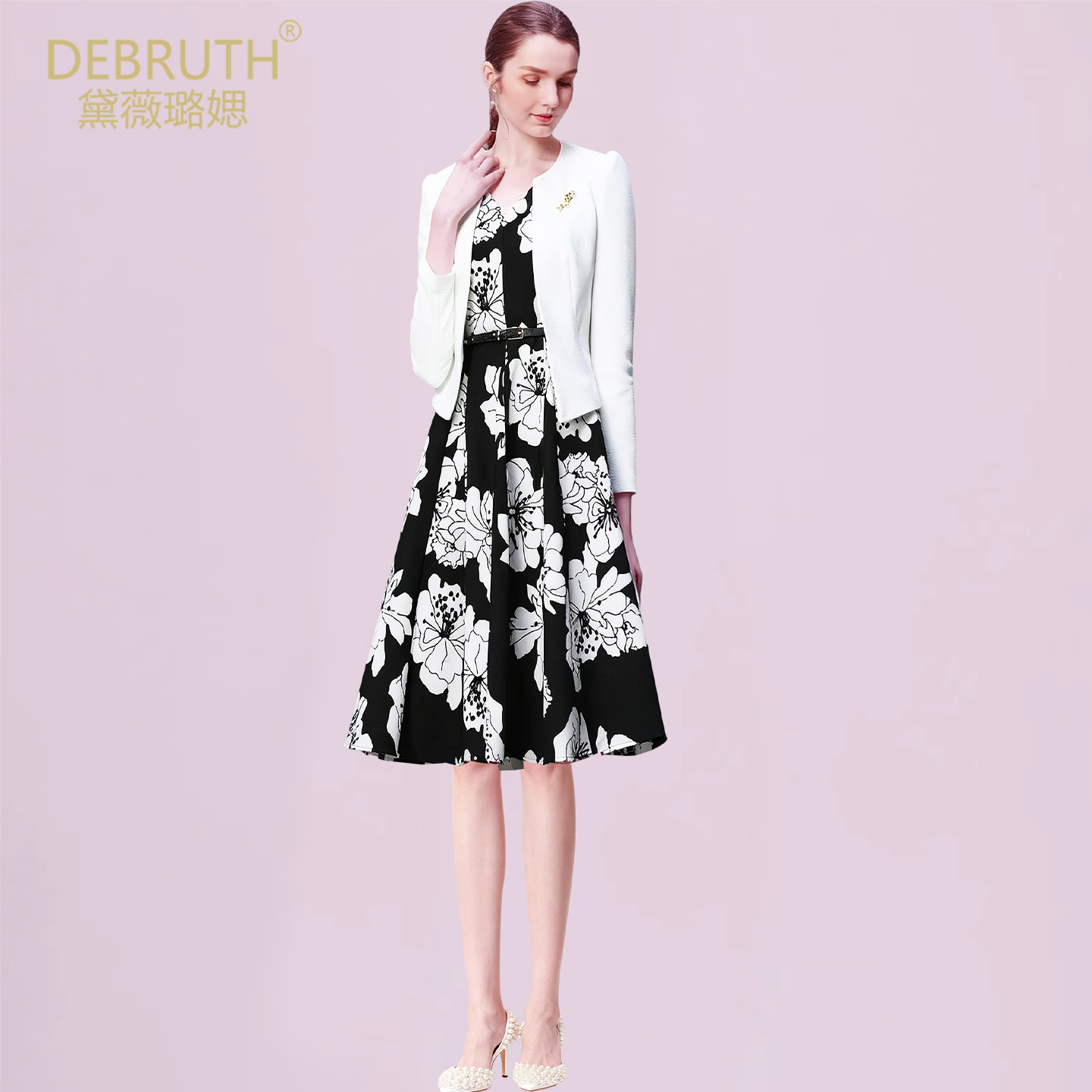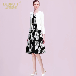 气质修身 法式 2件套 配印花背心连衣裙女2025秋新款 黛薇璐媤白西装