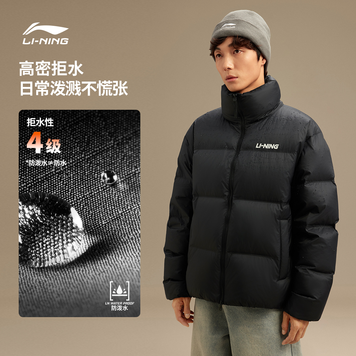 衣服官方防风连帽运动外套男保暖上衣 鸭绒短款 李宁羽绒服男士 冬季
