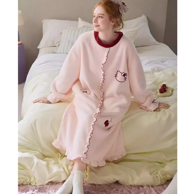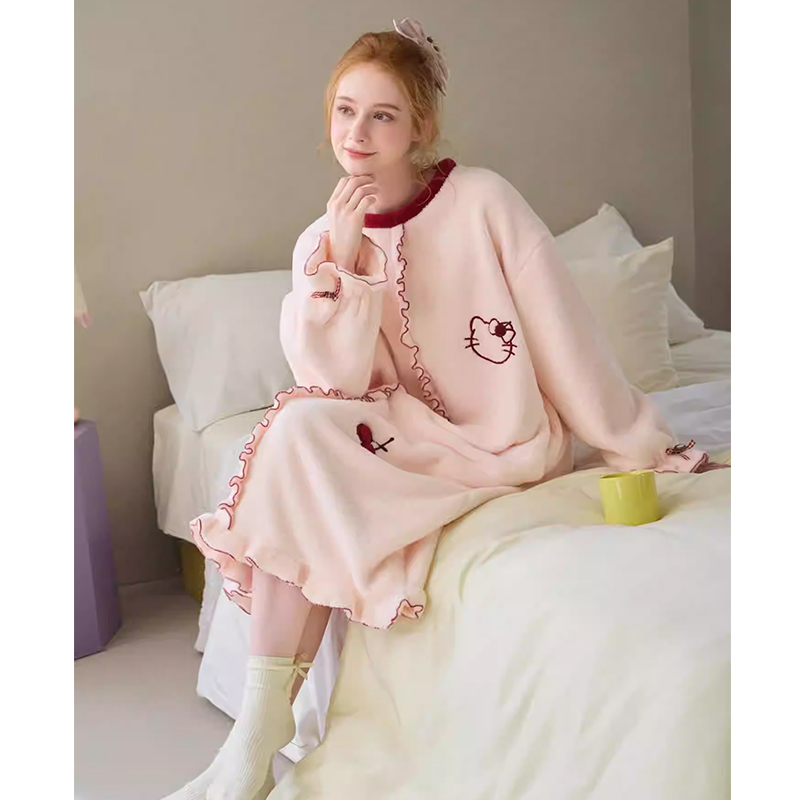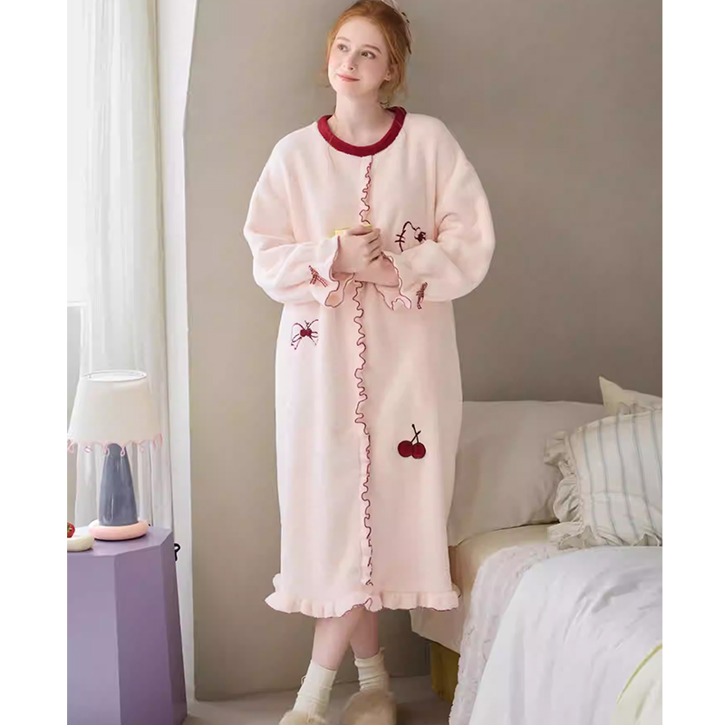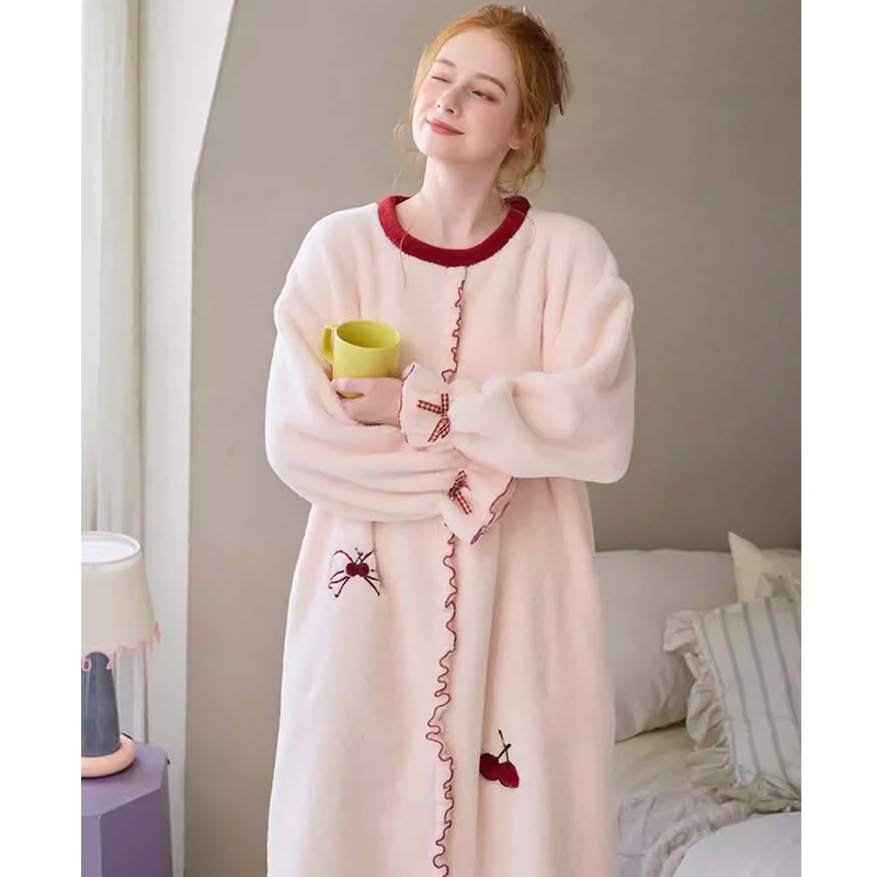 芬腾芬腾女士秋冬睡裙珊瑚绒睡衣甜美加绒加厚中长款 保暖家居服