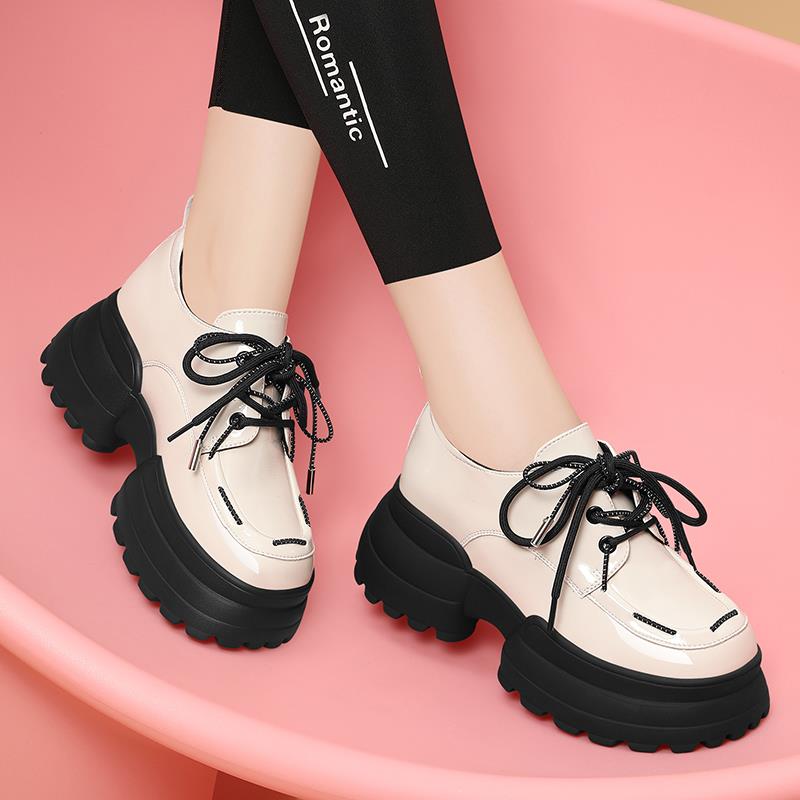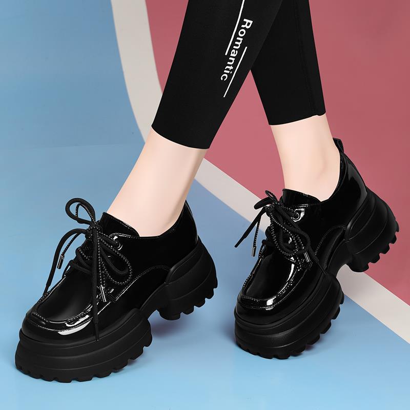 黑色小皮鞋 高跟风单鞋 女1005u 女2025新款 秋冬厚底乐福鞋
