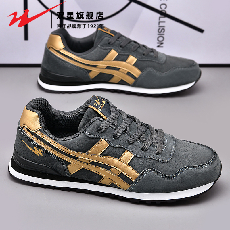 春秋款 运动软底百搭潮鞋 男士 皮面防水板鞋 复古休闲鞋 双星阿甘男鞋