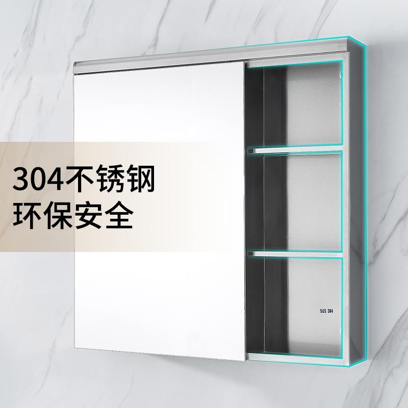 304不锈钢浴室镜柜 洗手间壁柜储物柜卫生间镜子带置物架置物吊柜