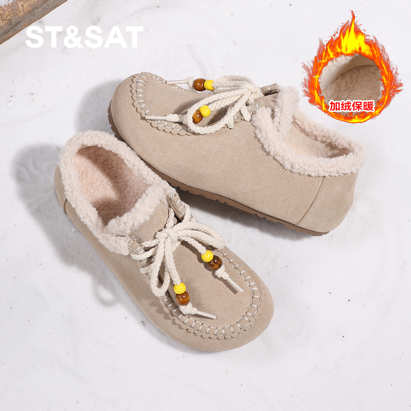 女2025新款 内增高豆豆鞋 秋季 袋鼠鞋 加绒保暖棉鞋 星期六真皮勃肯鞋