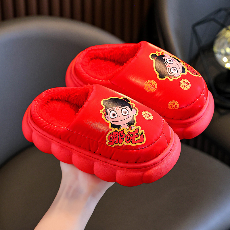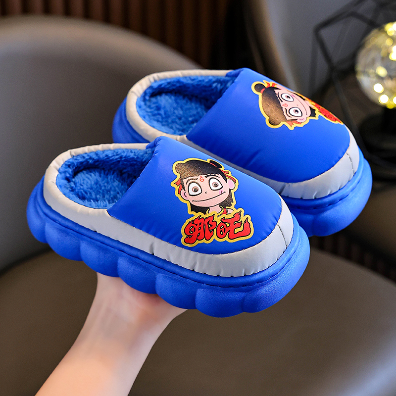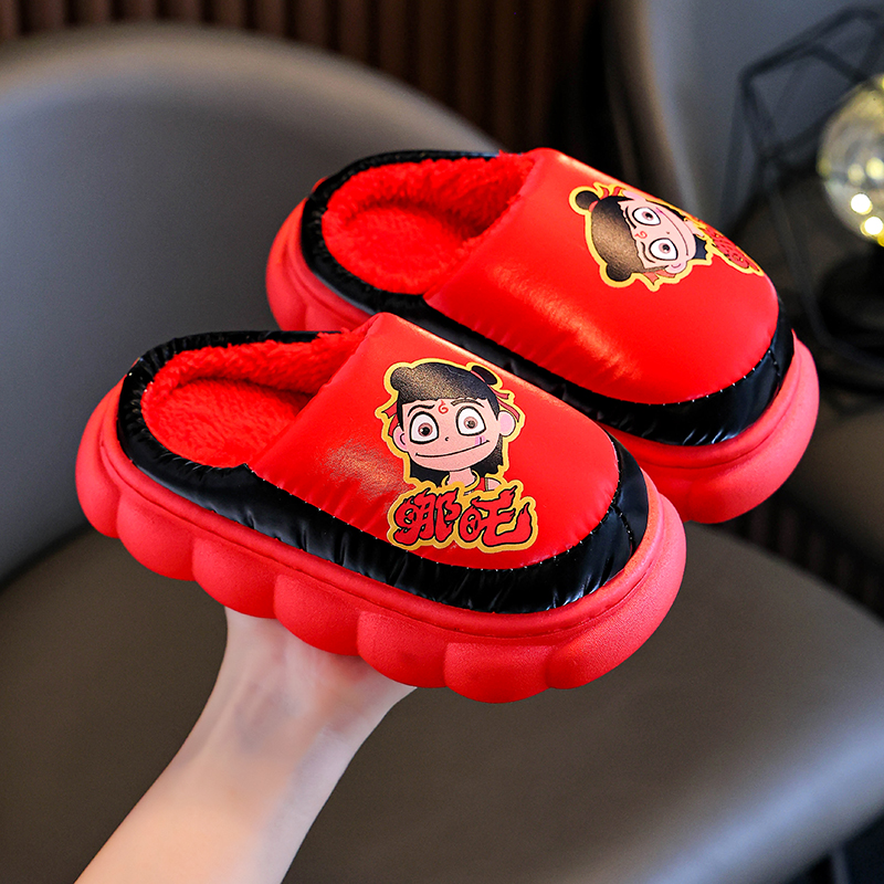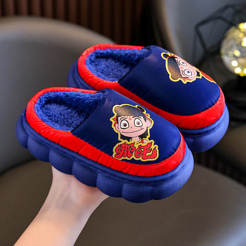 防滑居家小孩棉鞋 新款 男女童保暖加绒棉鞋 儿童棉拖鞋 哪吒冬季