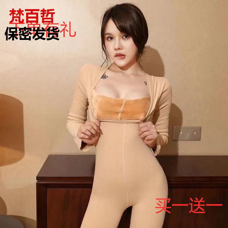秋冬女士肤色连体衣成人全身衣加绒加厚保暖塑身美体衣紧身衣连袜