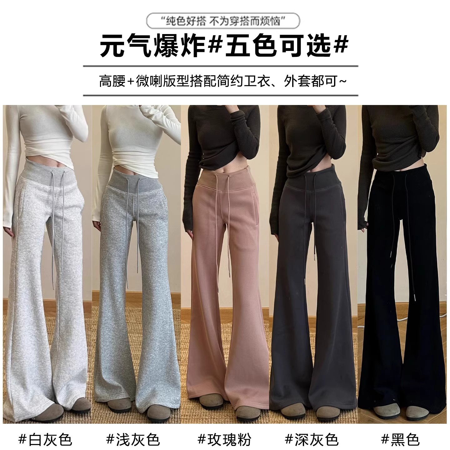 喇叭卫裤 灰色辣妹微喇运动裤 高腰显瘦垂感lulu同款 2025新款 女秋季
