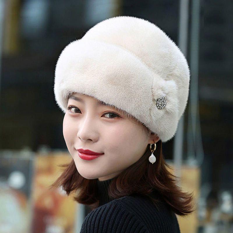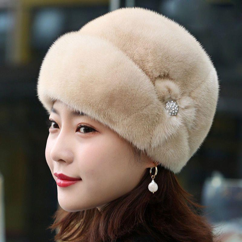 YUKE冬季 潮流遮阳帽沙滩帽 妈妈保暖帽毛毛帽妈妈帽整貂贝雷帽时尚
