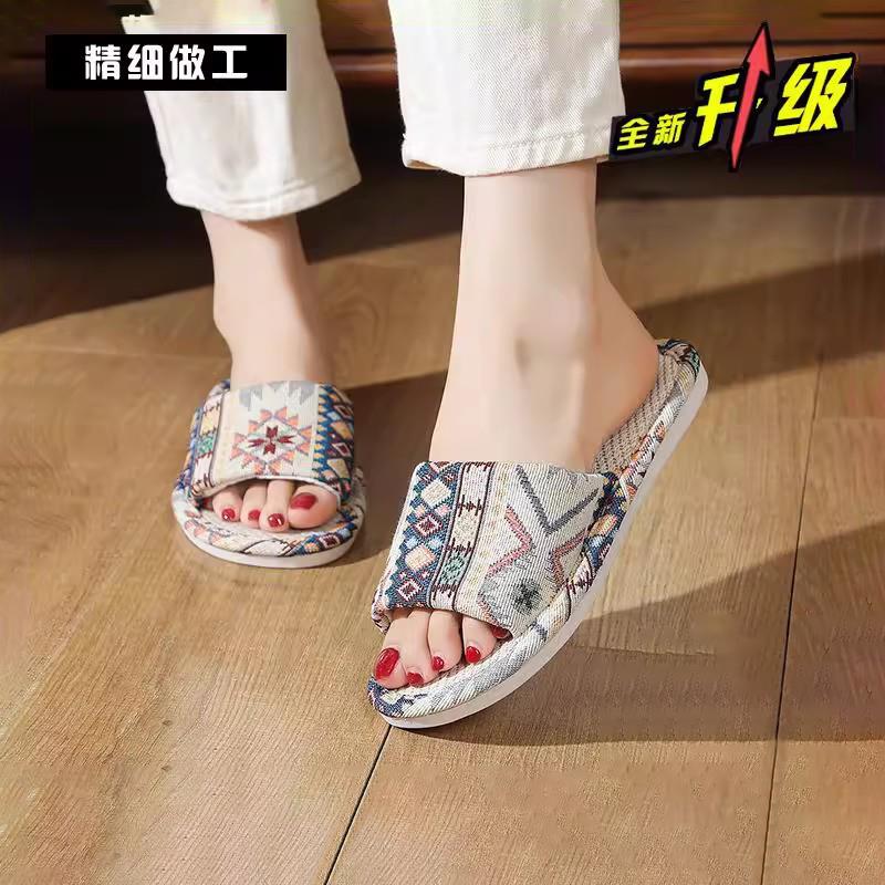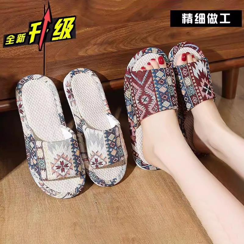 男士 棉麻布拖鞋 民宿酒店 女春秋家用情侣室内静音防滑四季 亚麻拖鞋
