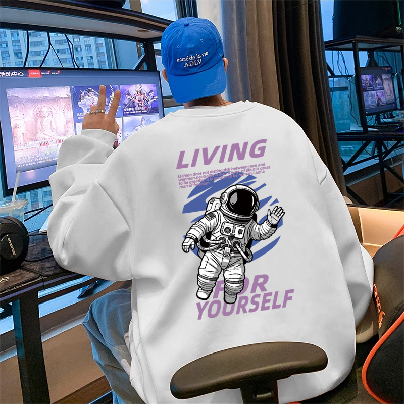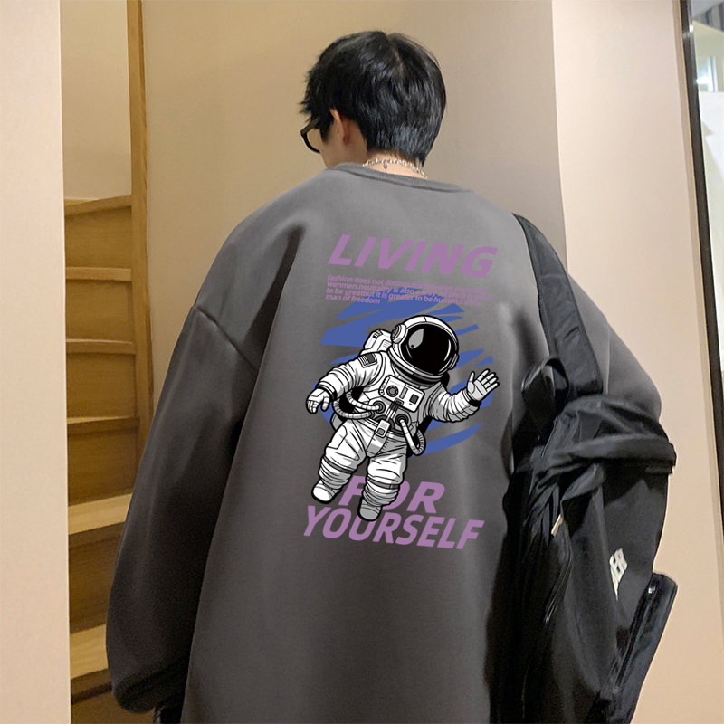 男生春秋季 上衣服潮牌休闲 无帽圆领卫衣外套宽松初中生青少年长袖