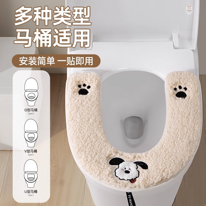 毛绒垫子 通用坐便器垫圈加厚冬季 马桶坐垫套2025新款 拉链防水四季