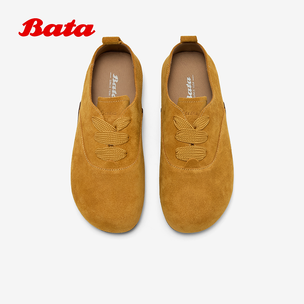 牛剖皮百搭通勤豆豆底单鞋 商场新款 73118CM5 女2025秋季 Bata休闲鞋