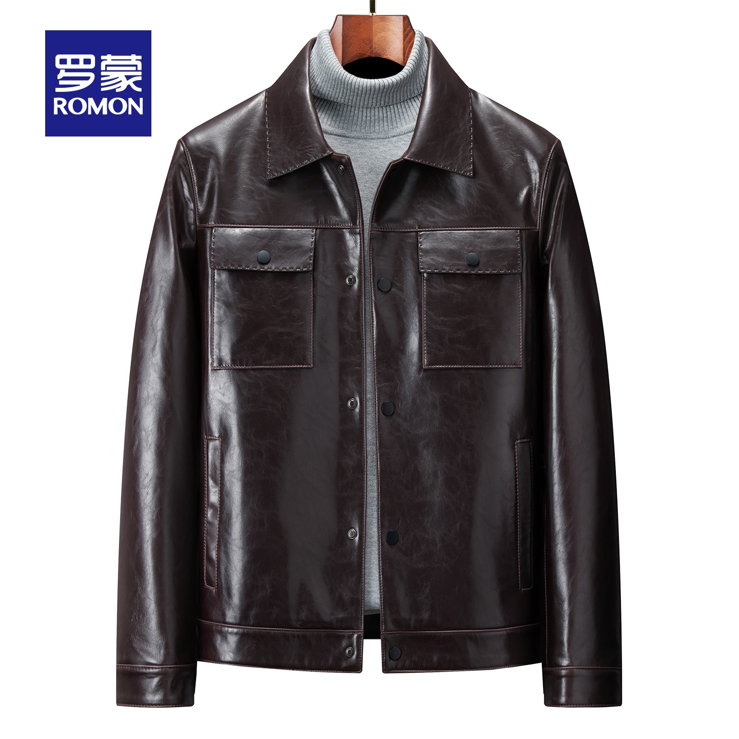 复古廓形翻领机车夹克PU皮衣美拉德外套 美式 PANMAX大码 潮牌男装