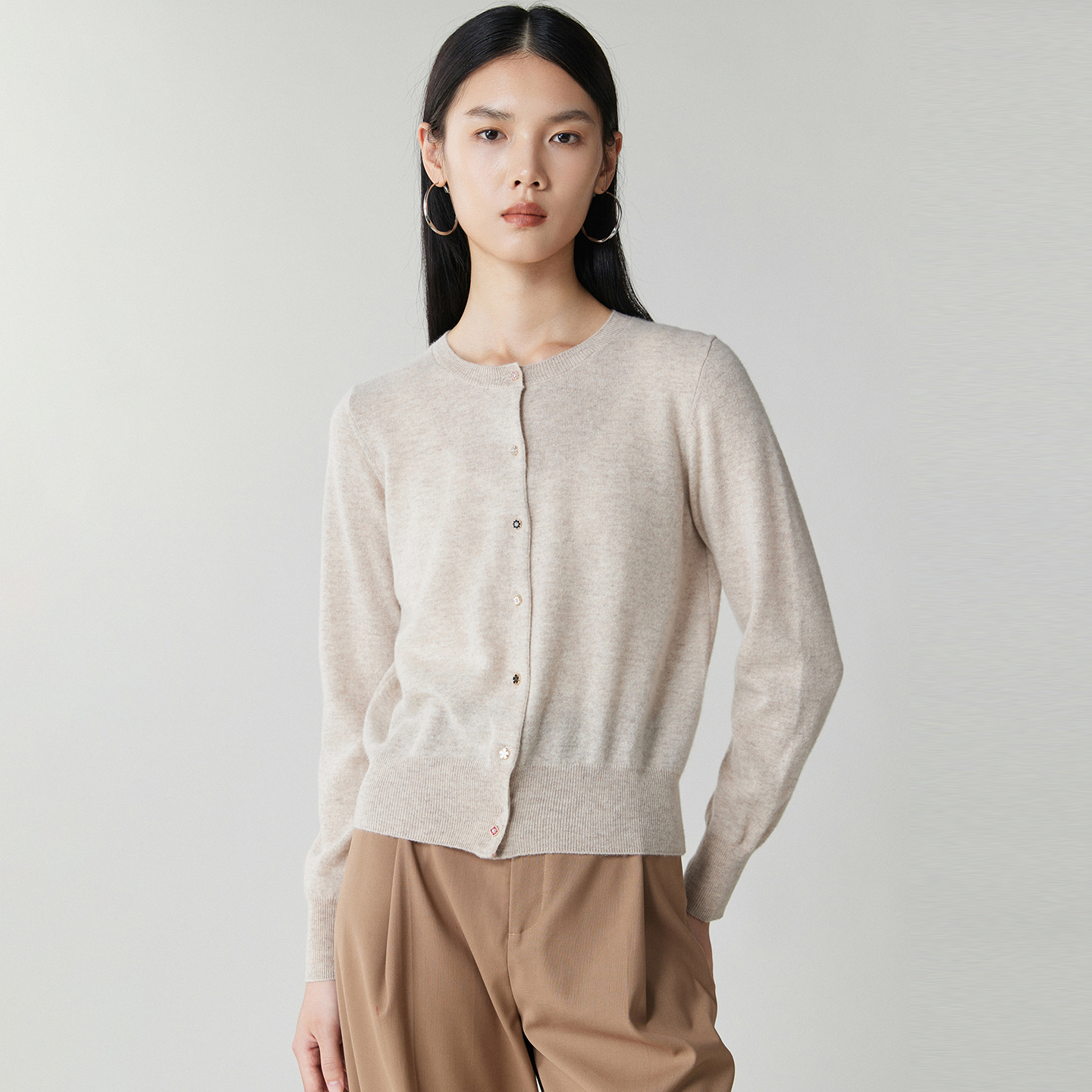 香风针织外套秋冬新品 OCHIRLY欧时力 可机洗100%羊绒衫