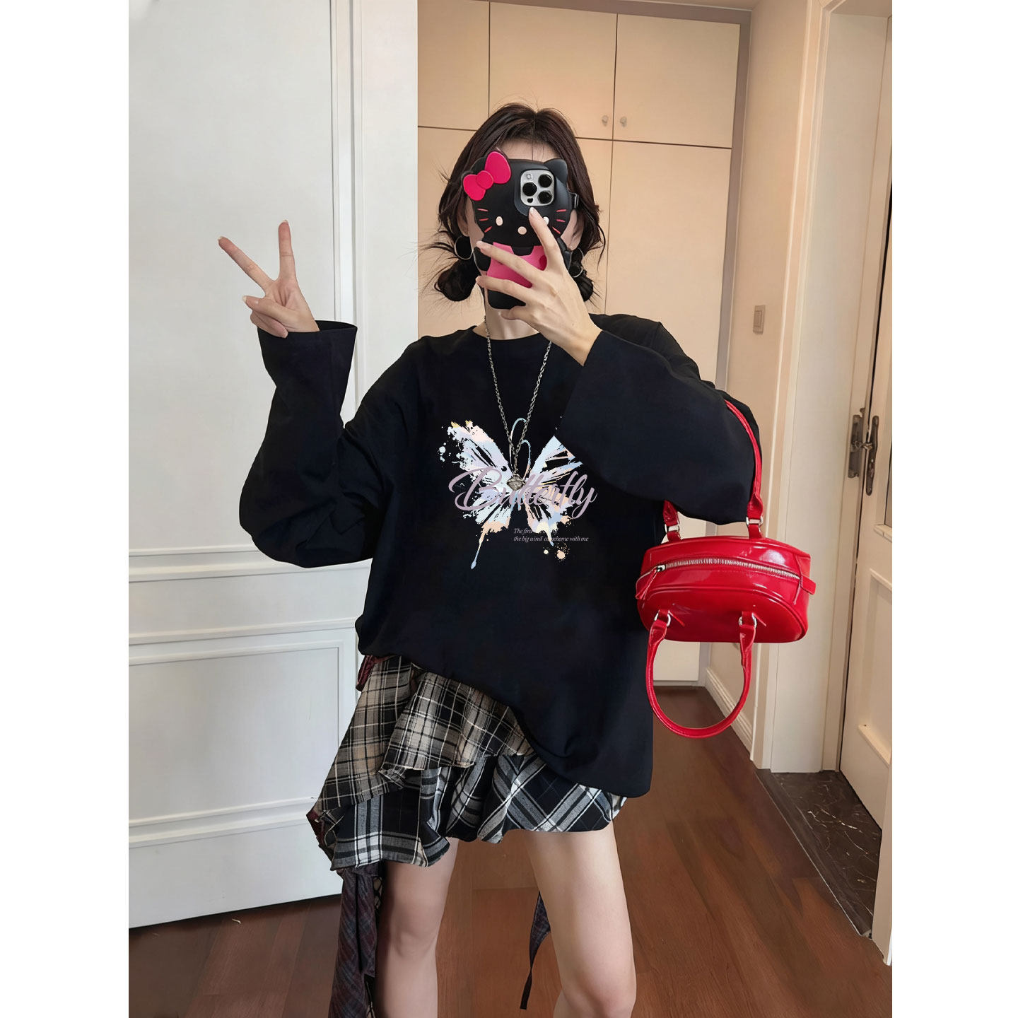 巨好看 黑色纯棉长袖 内搭打底衫 女装 早秋上衣 t恤女2025今年新款
