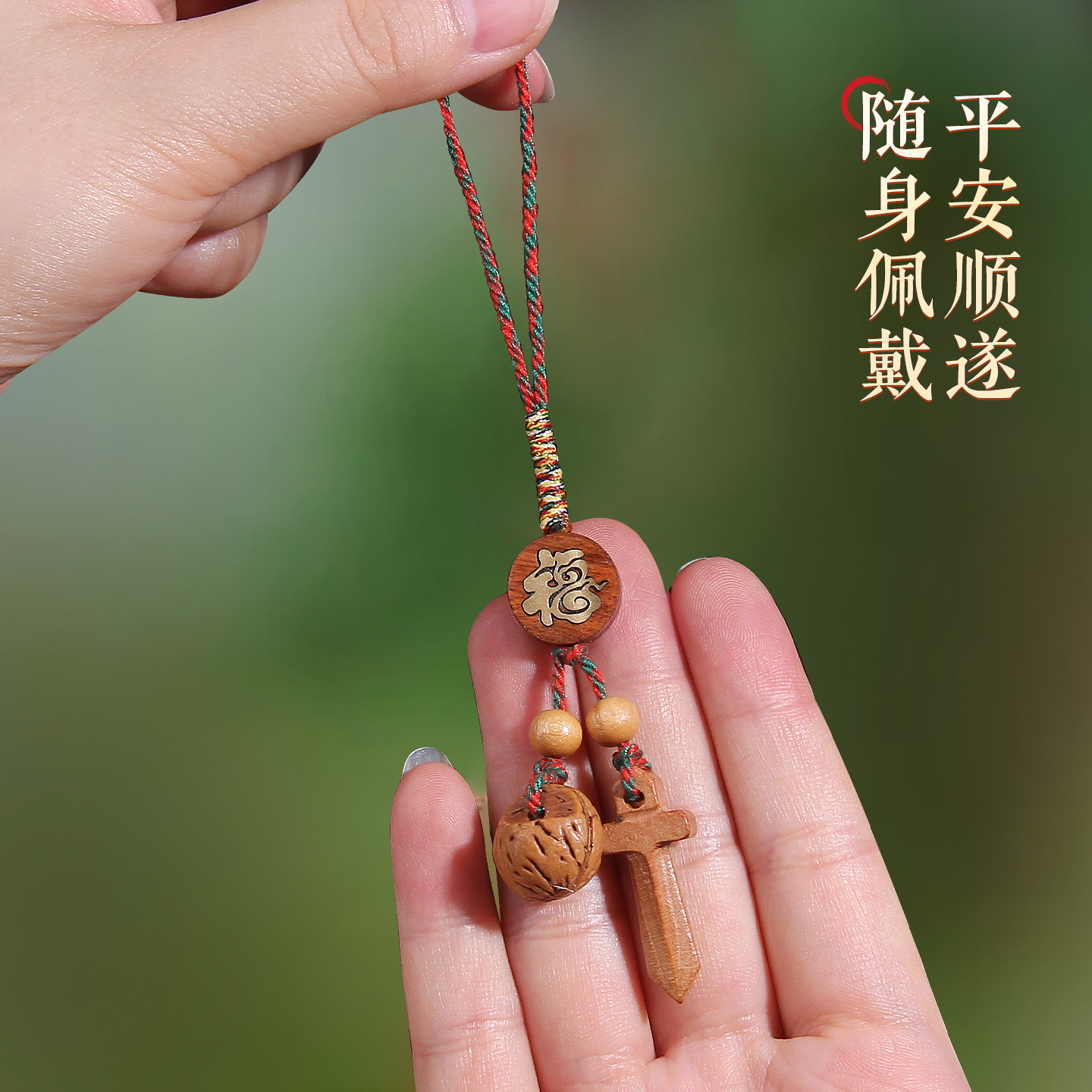 老桃木挂件桃篮宝剑平安葫芦防吓惊随身婴儿童护手机钥匙包外出挂