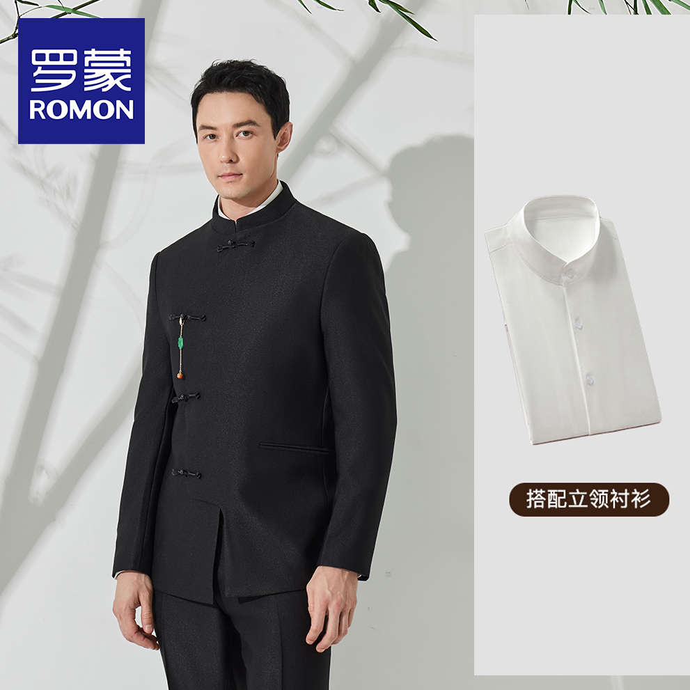 国风西装 罗蒙男立领中山装 新中式 新款 新郎结婚订婚西服NX 2025秋季