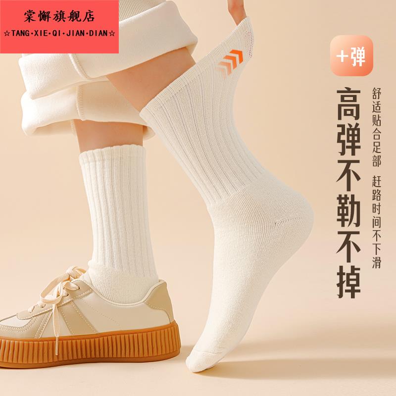 堆堆袜子中筒袜秋冬加厚加绒外穿白色长筒长袜冬季 女士保暖棉袜潮