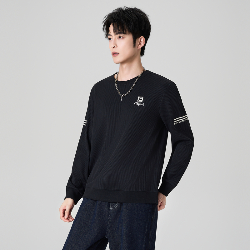 字母标长袖 时尚 上衣舒适内搭 宽松卫衣男2025年秋新款 快鱼落肩袖