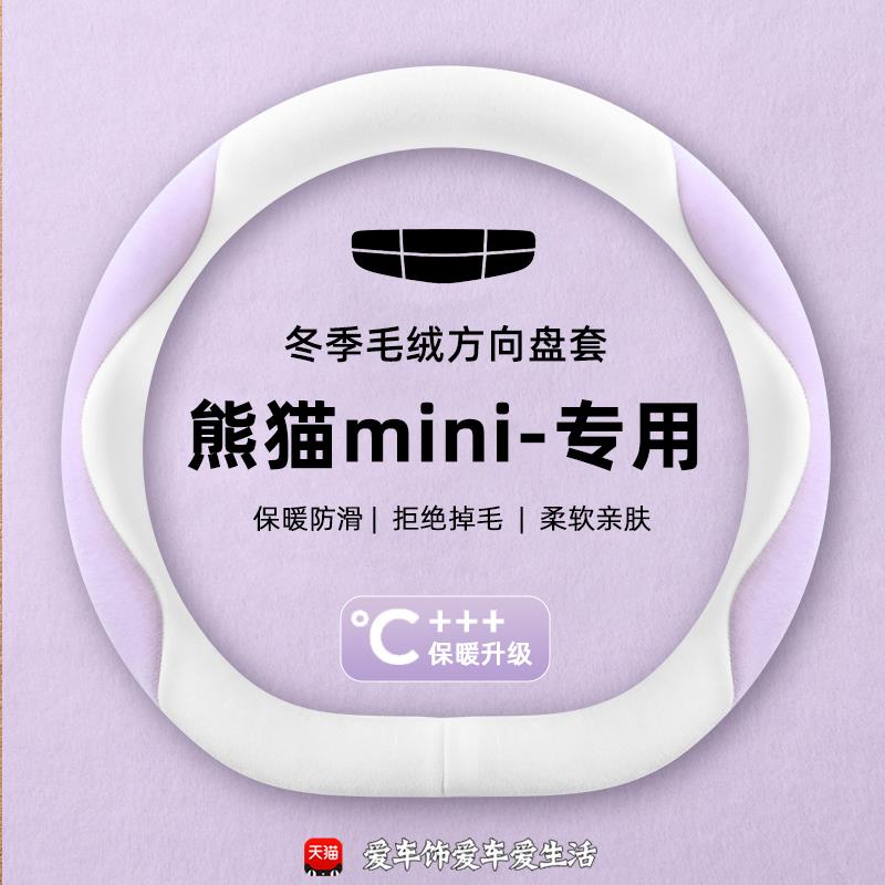 适用吉利熊猫mini卡丁骑士方向盘套元 毛绒 气熊保暖防滑车把套冬季