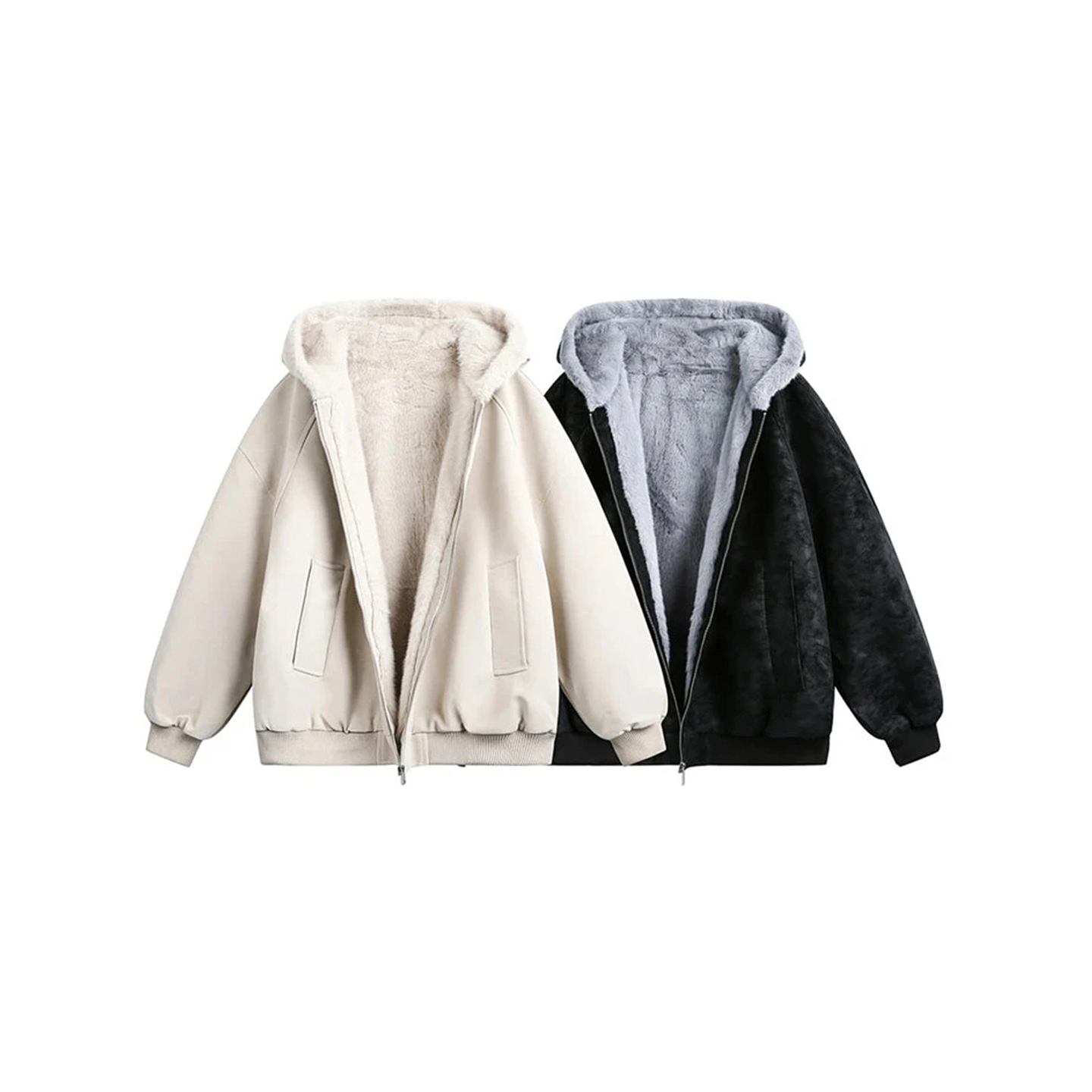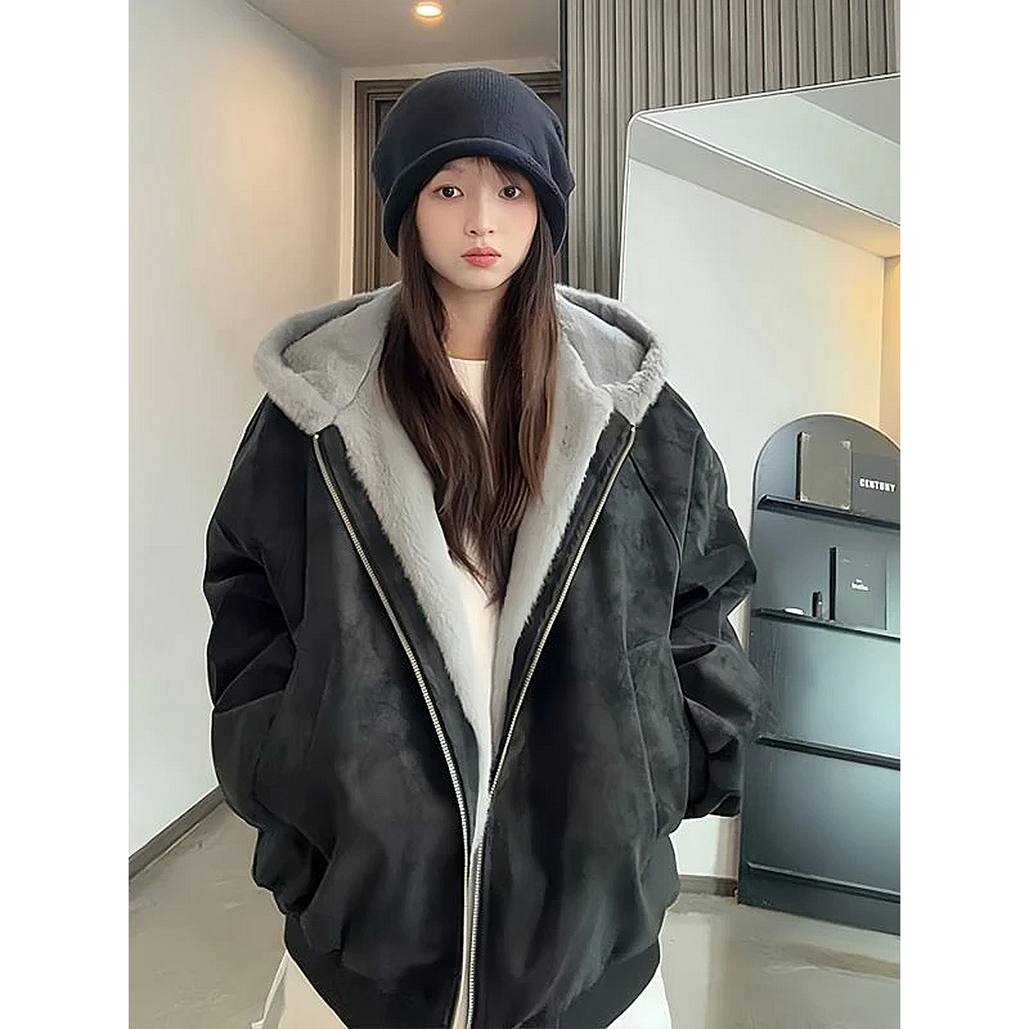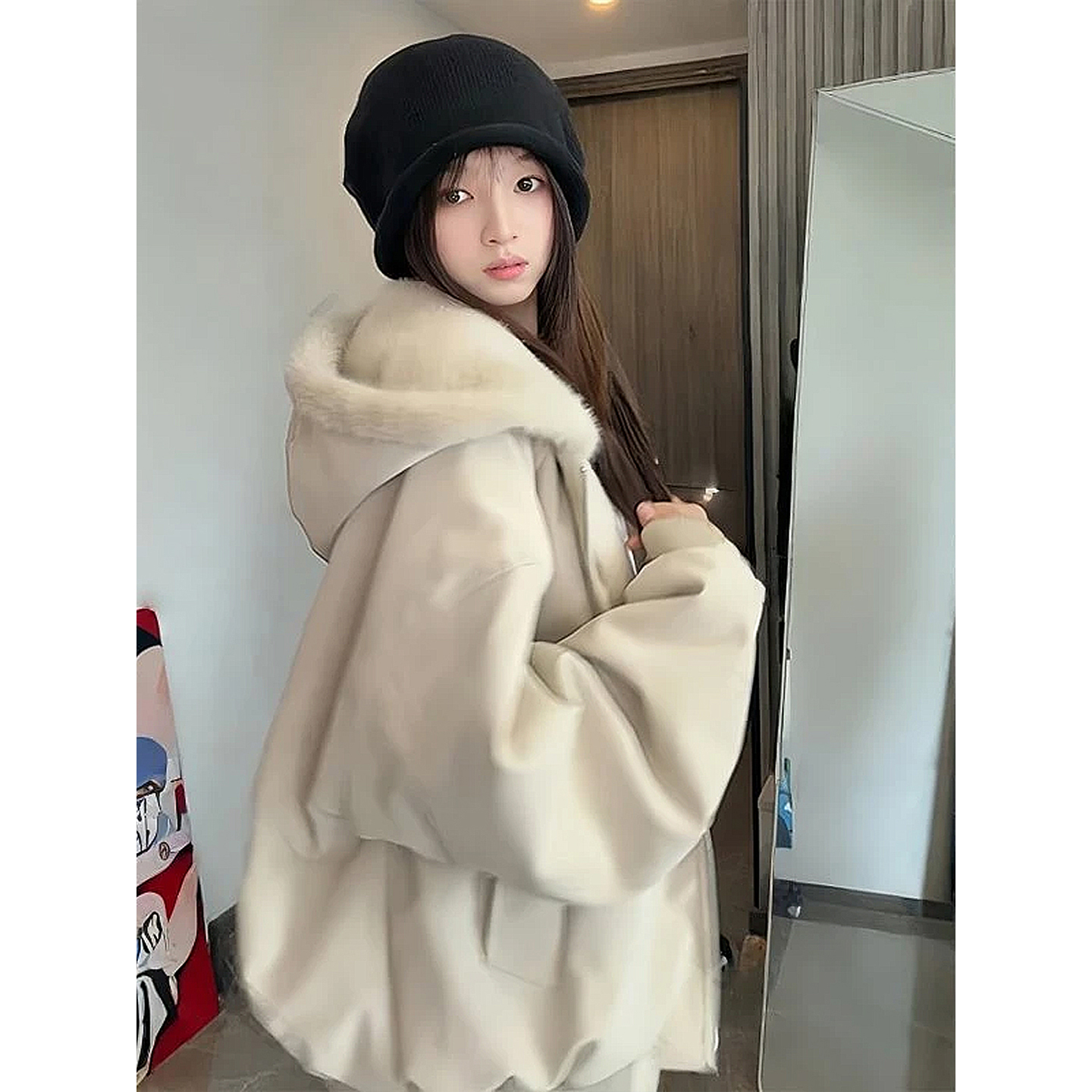 连帽外套 羊羔绒加厚保暖夹克棉衣美式 座山雕PU皮衣棉服男女款 冬季