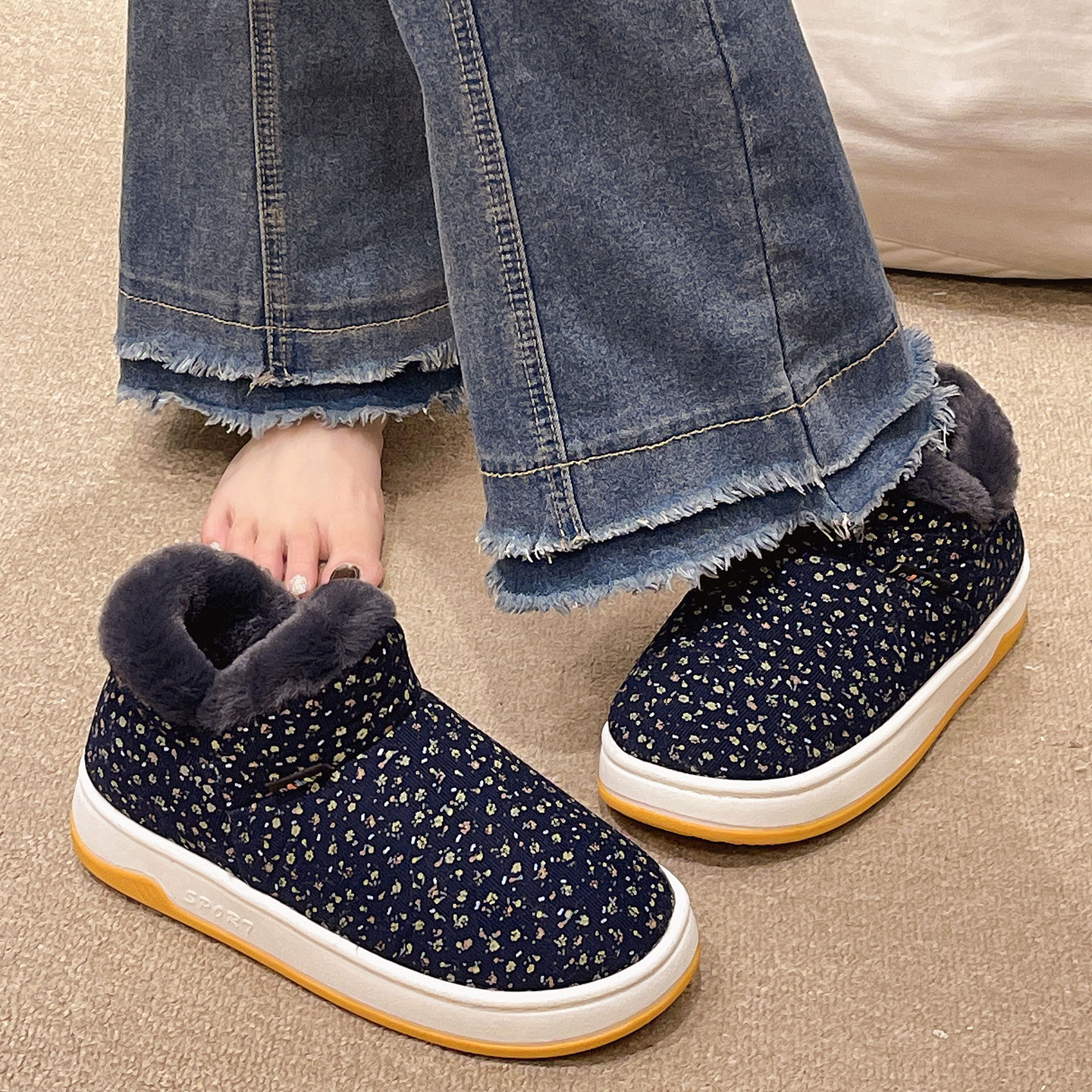 朴西朵朵绒情侣毛绒棉拖鞋 女士秋冬保暖防滑抗菌居家室内毛毛拖鞋