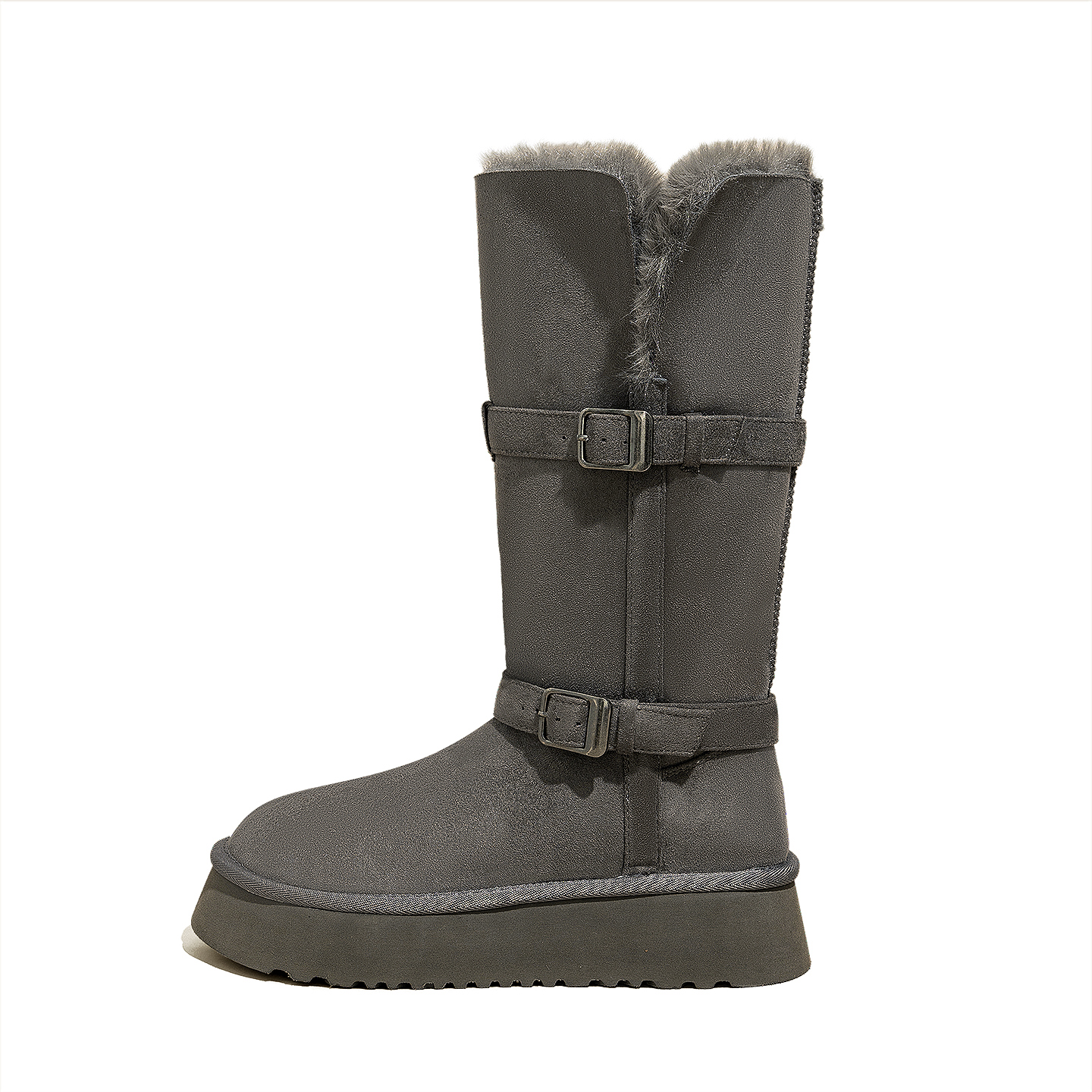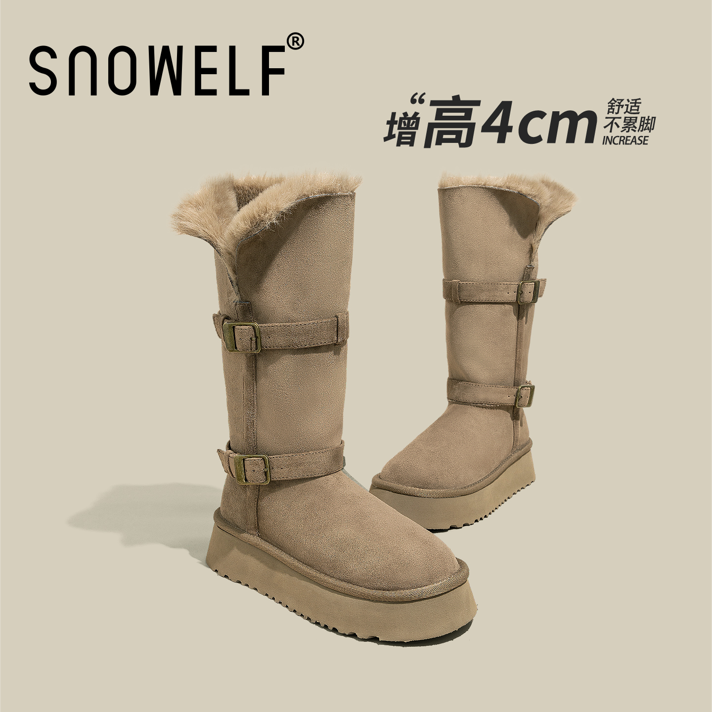 增高加绒加厚高筒保暖棉鞋 新款 子 2025冬季 灰色厚底长筒雪地靴女款