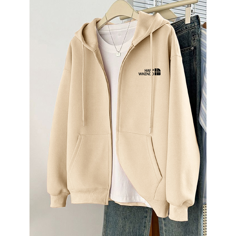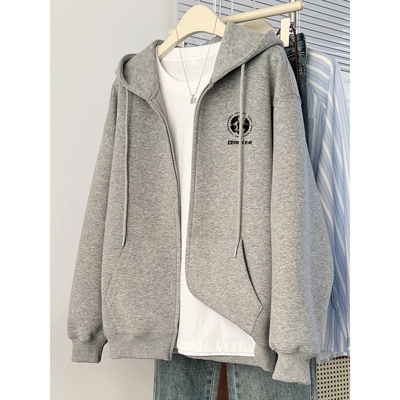 拉链上衣 卫衣女秋冬ins潮酷原宿风胖mm宽松外套厚款 大码 连帽开衫