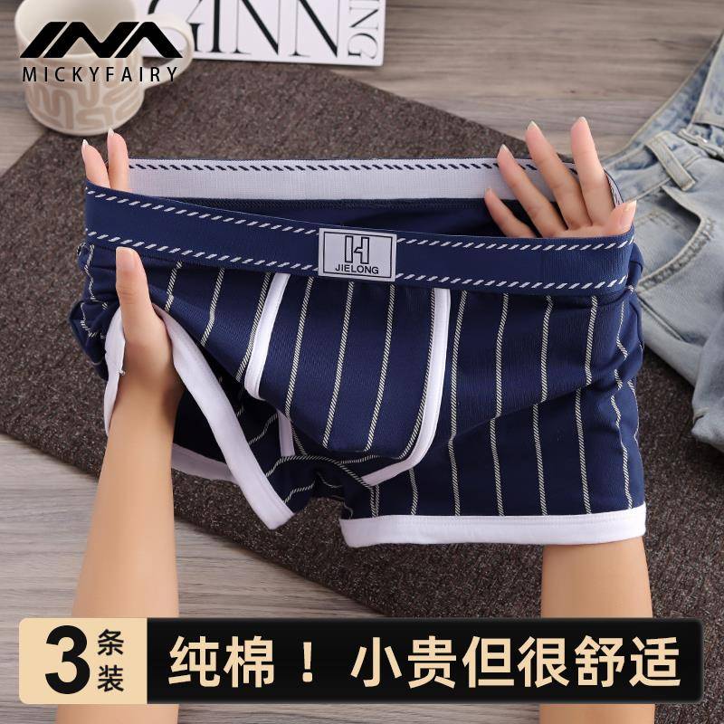新款 3件 纯棉透气裆青少年四角短裤 平角内裤 男生 蕉内银皮311S男士