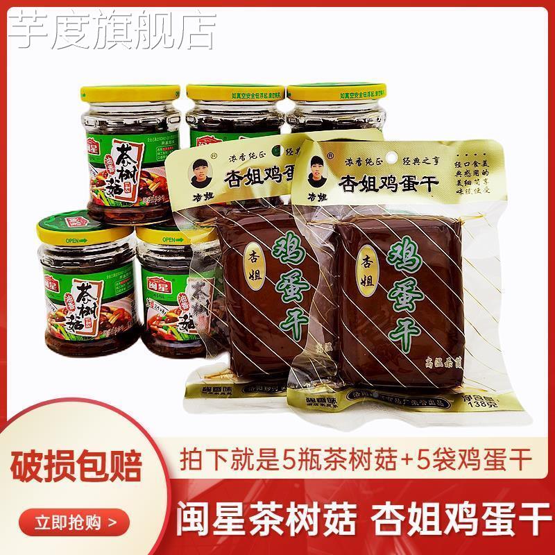 5套组合优质食用菌包装 闽星油香茶树菇罐头130g 杏姐鸡蛋干136g